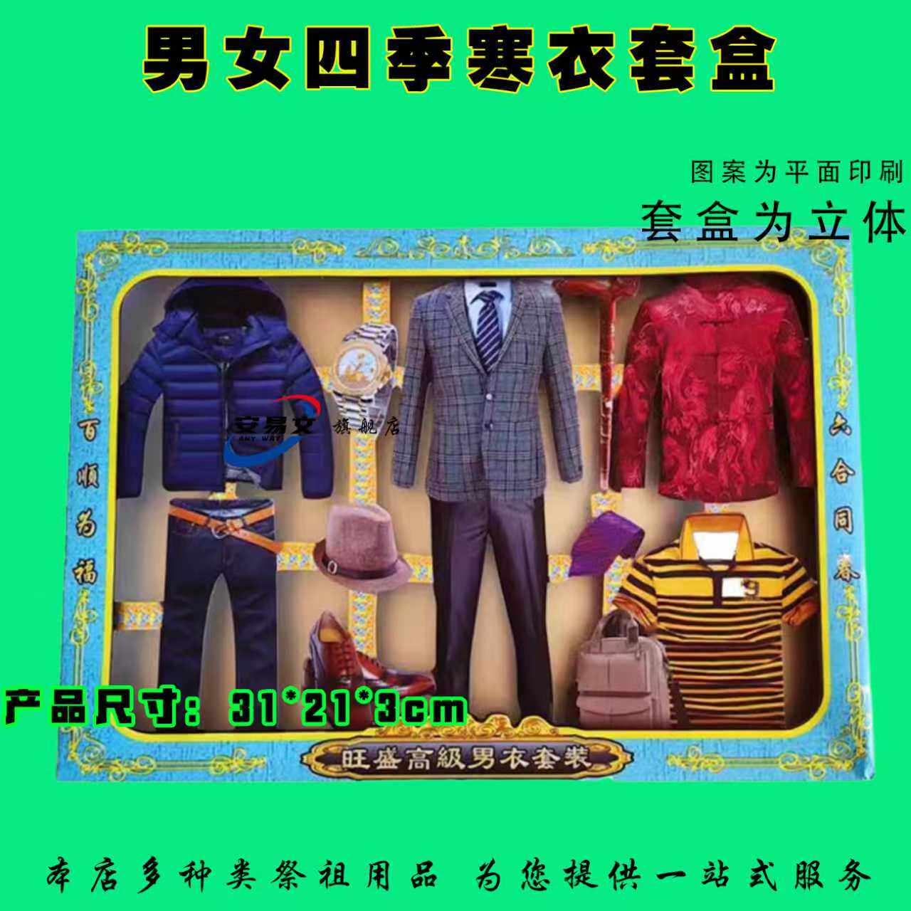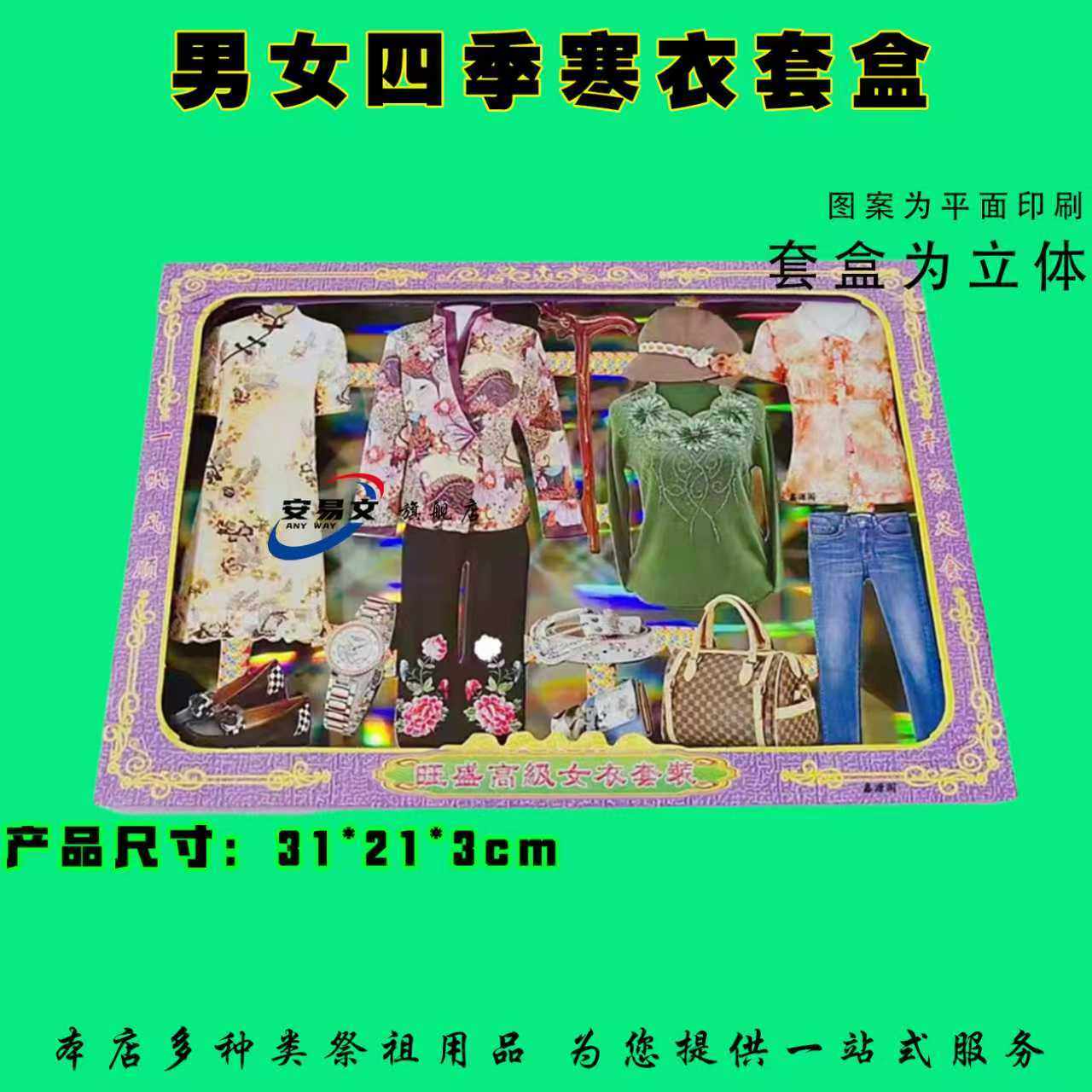 男女四季寒衣立体套盒清明节中元节寒衣节春节祭祖手工折纸金元宝金条