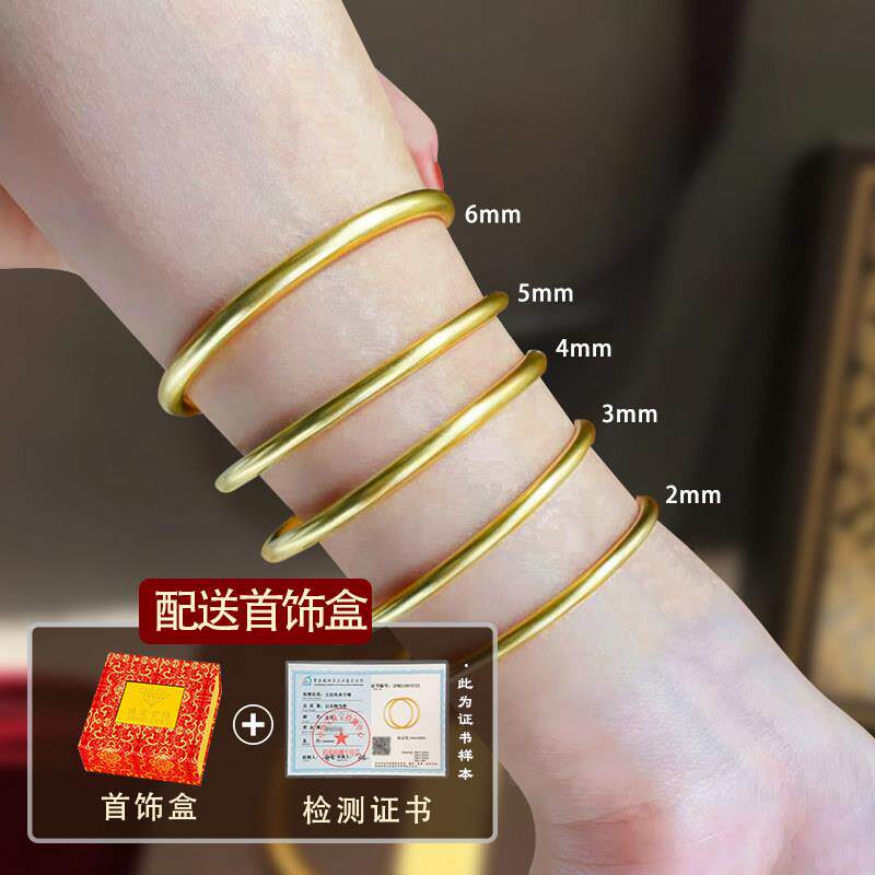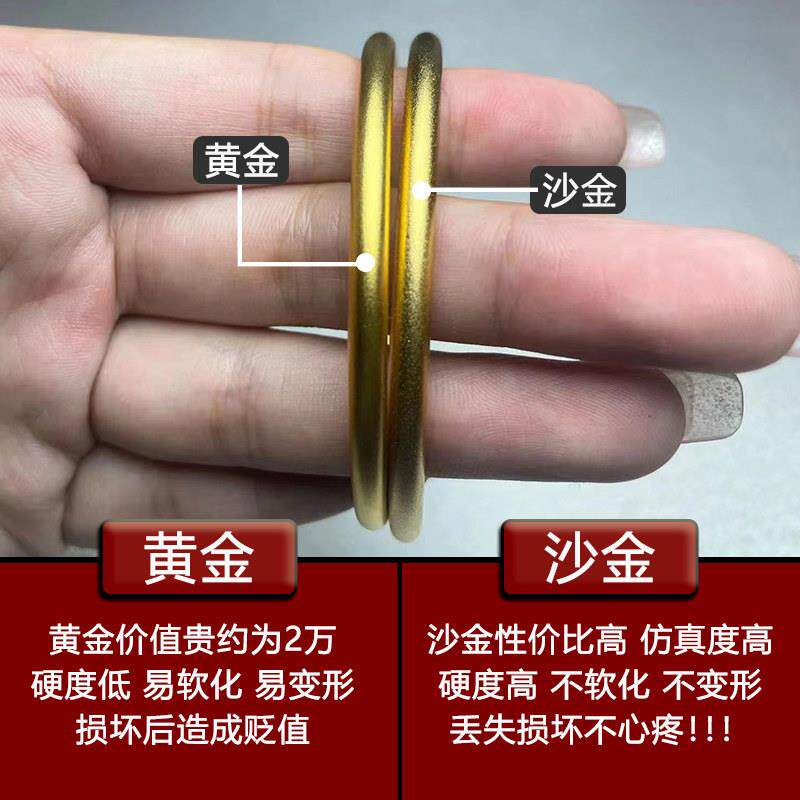 越南沙金手镯女古法黄金镯子彷真南非锡金实心久不掉色素圈