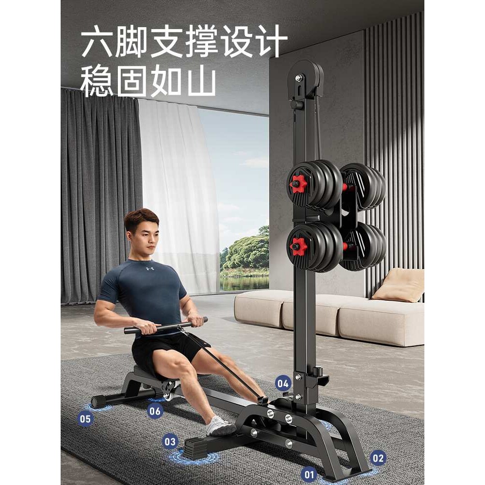 多功能哑铃划船机健身家用划船器室内可折叠健腹器通用训练器械