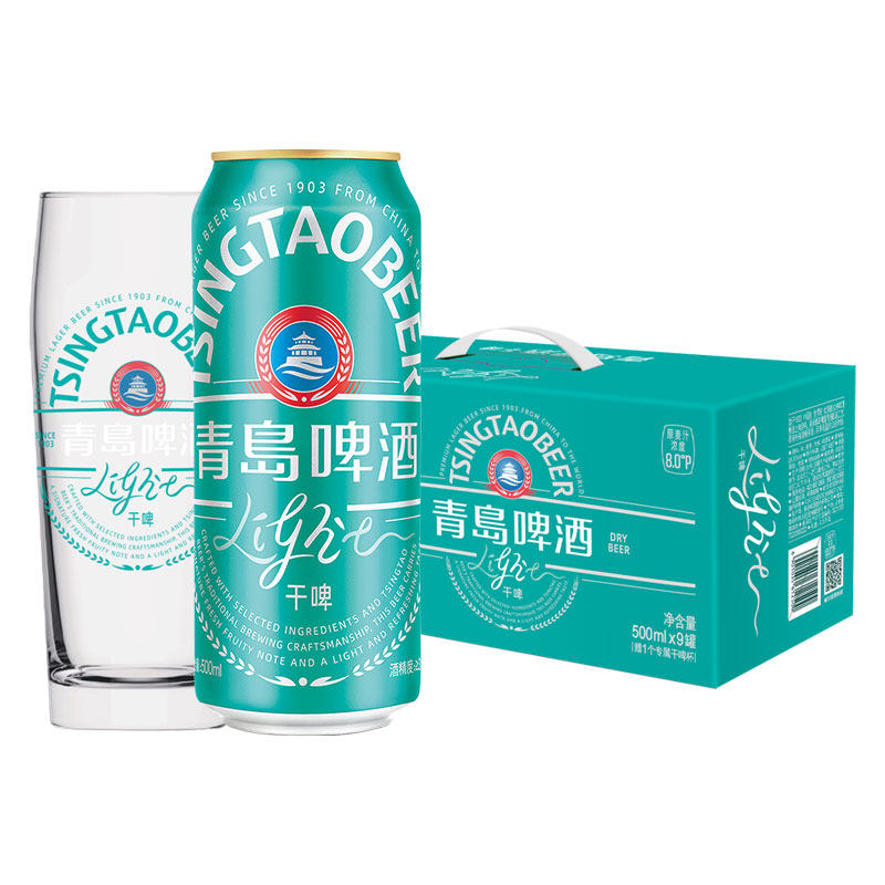 青岛啤酒轻干系列500ml*9听礼盒装罐啤