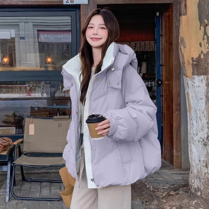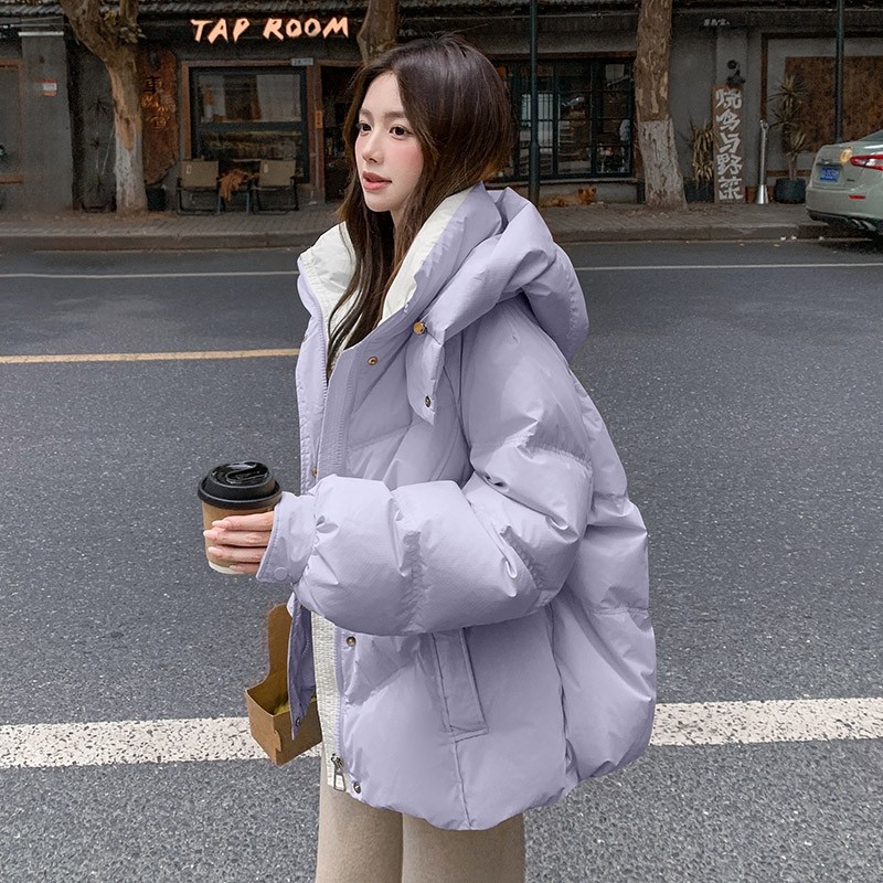 户外紫色羽绒服女冬2025年新款小个子短款加厚棉服面包服高端爆款