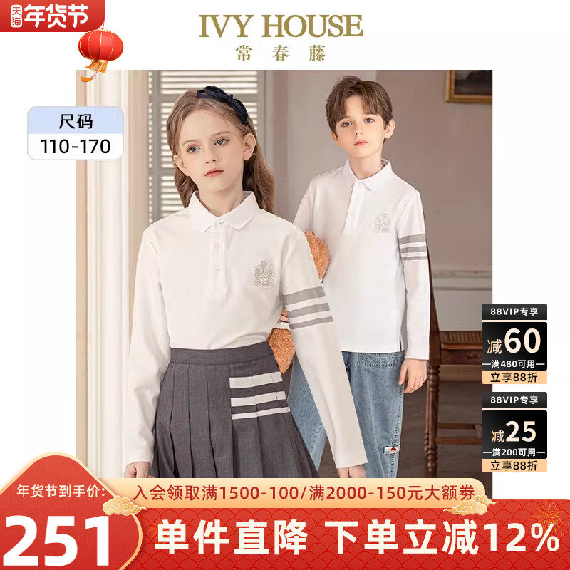 IVY HOUSE常春藤儿童装男女童春季学院风长袖POLO衫T恤打底亲子装