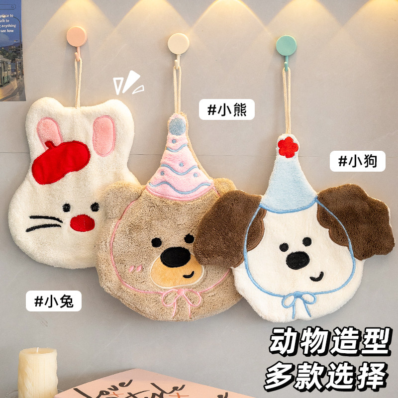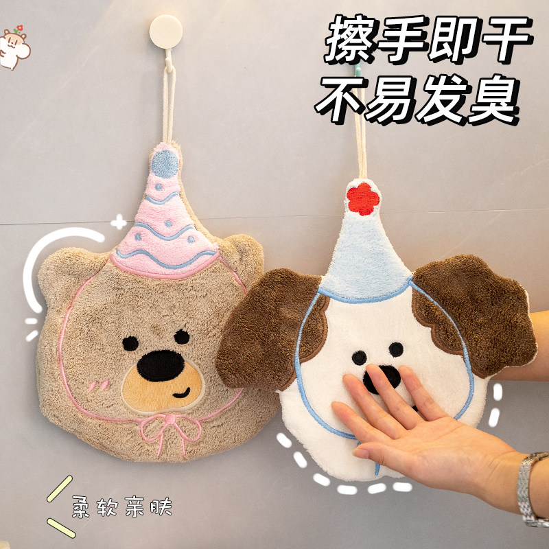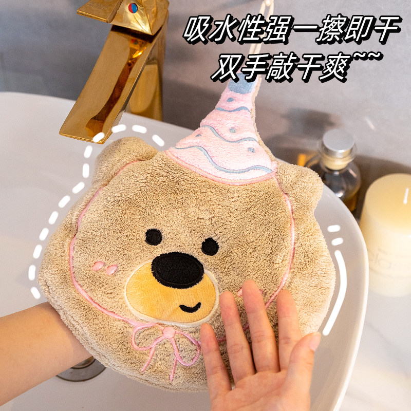 小熊擦手巾厨房挂式可爱加厚毛巾吸水不掉毛抹布儿童卫生间卡通
