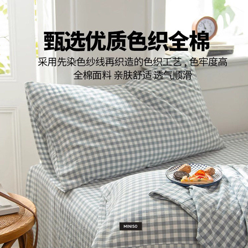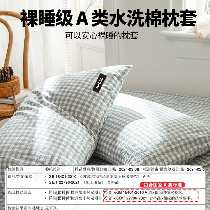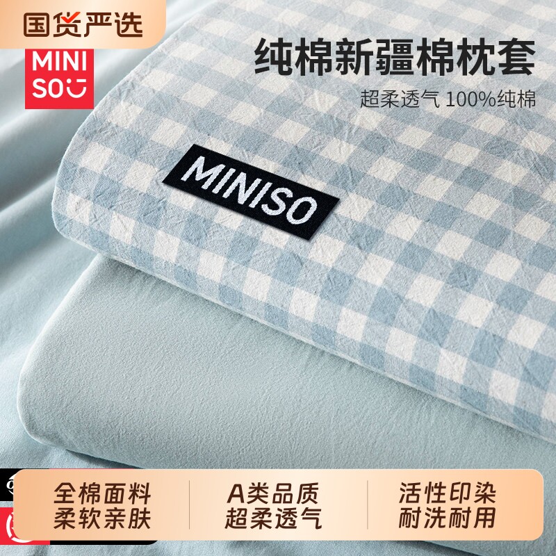名创优品全棉色织水洗棉枕套一对装纯棉枕头套单个内胆套2026新款