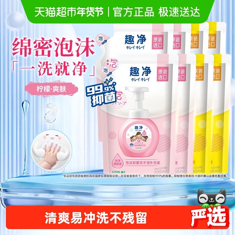 狮王趣净泡沫抑菌洗手液纯净爽肤香全家适用儿童洗手液补充装