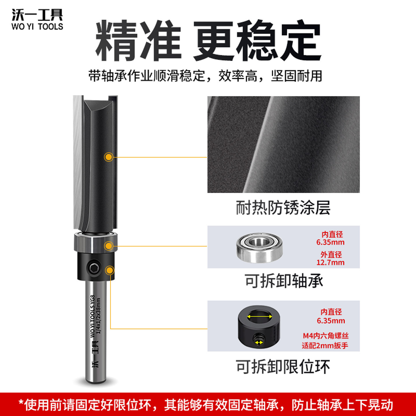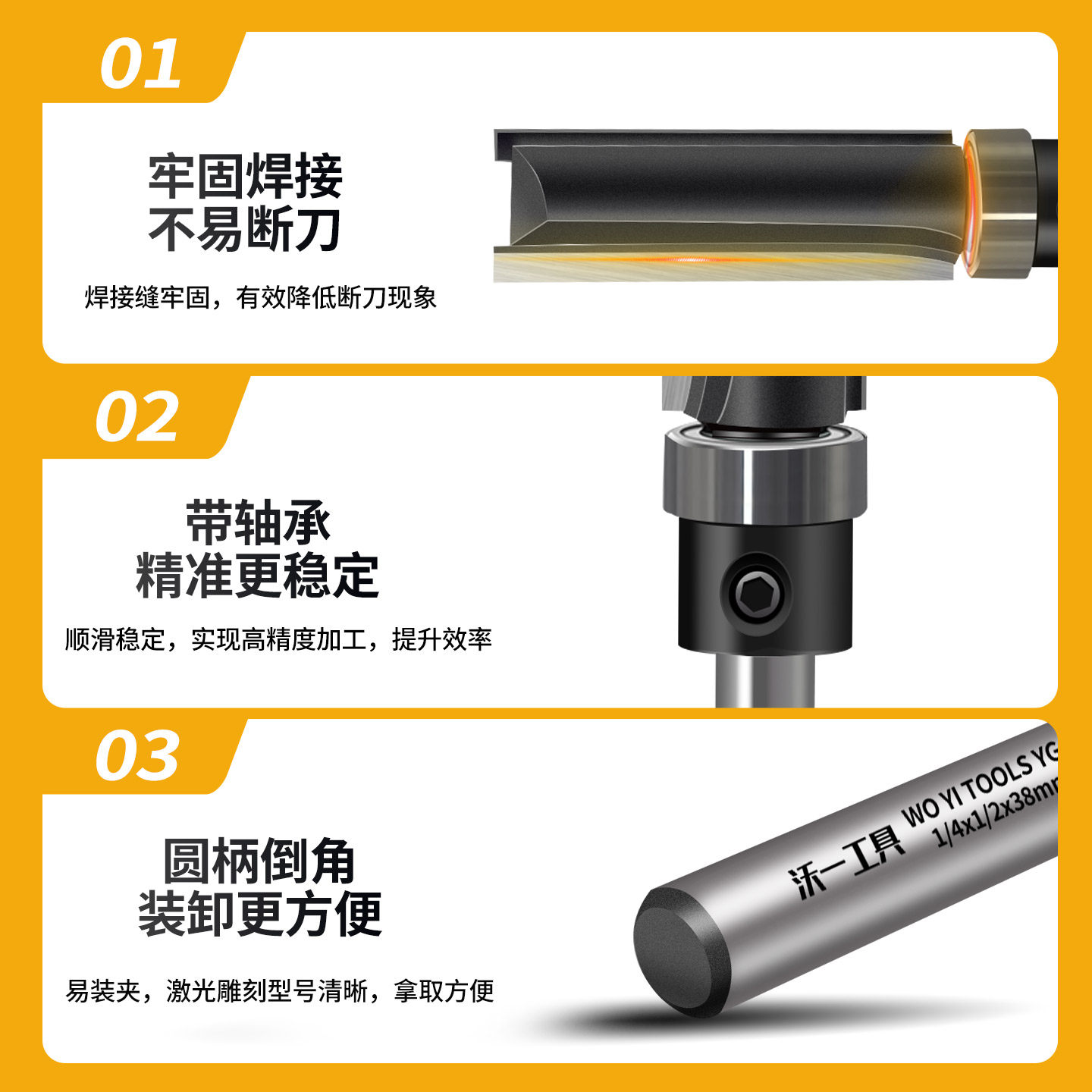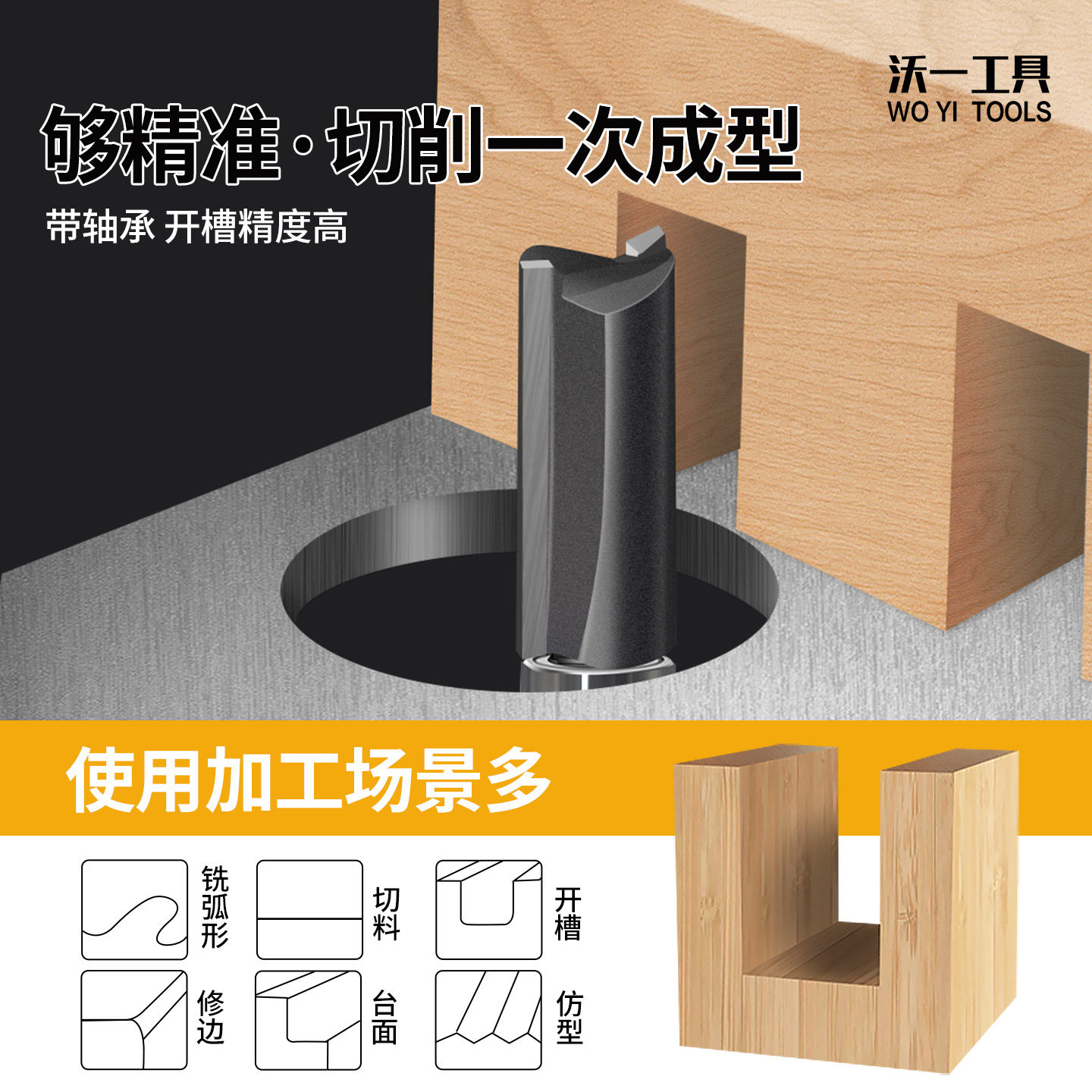 沃一工业级仿型铣刀木工修边机带轴承开槽刀雕刻机木板修边开料刀