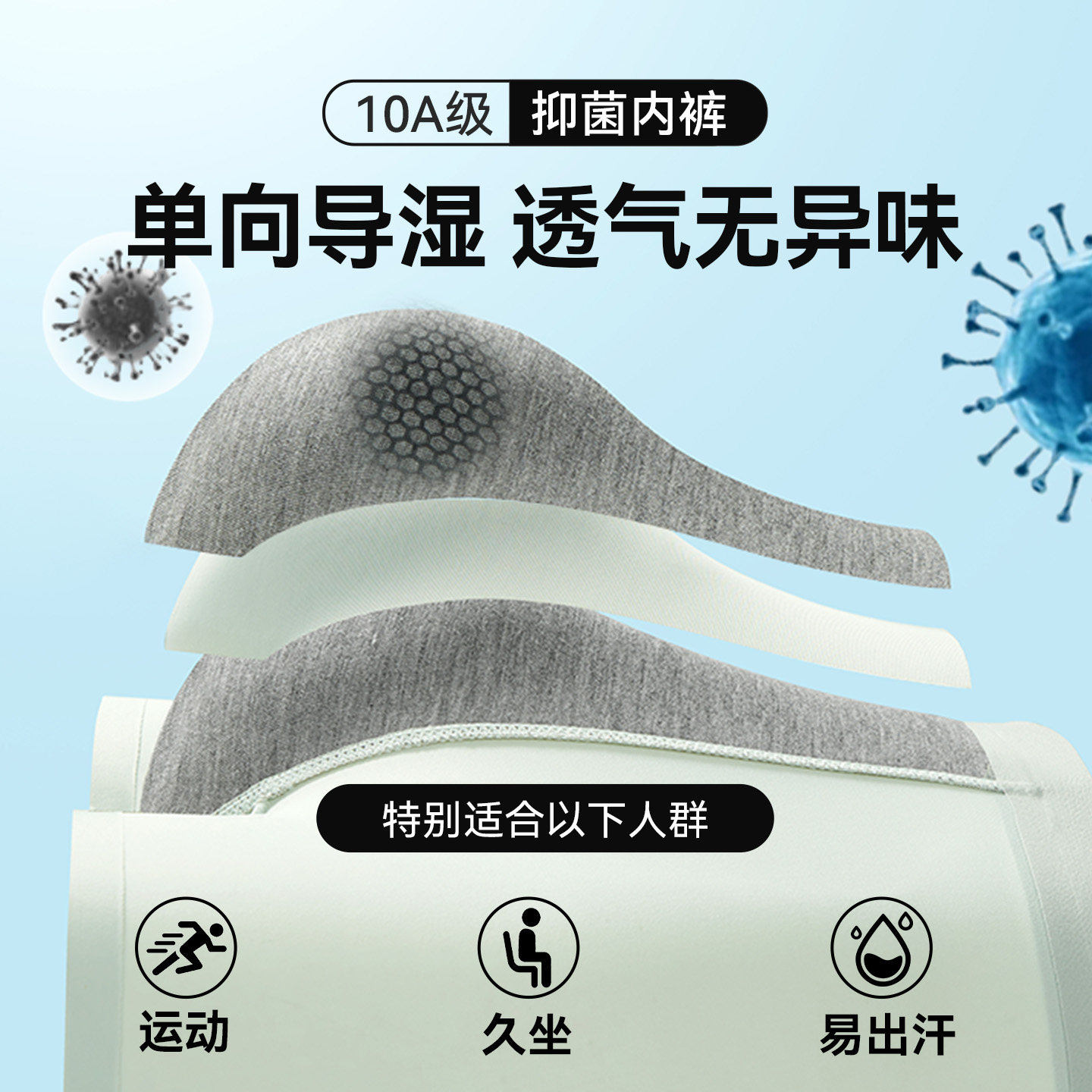 安比斯男士冰丝内裤四角裤抗菌裆男生平角短裤头男式透气夏季