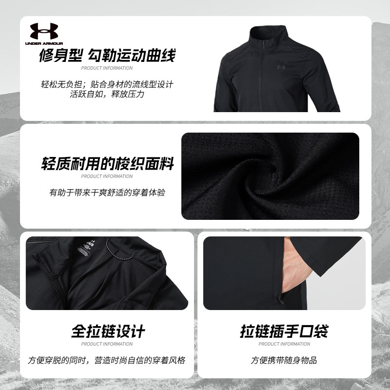 UA安德玛立领外套男士秋季健身跑步运动服薄款速干梭织夹克防风衣