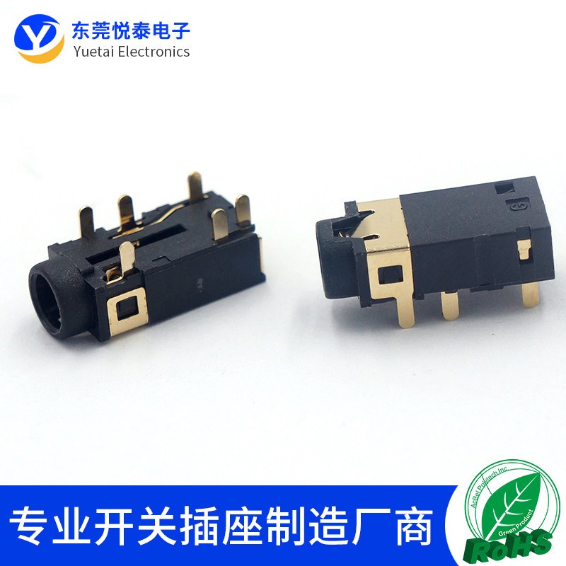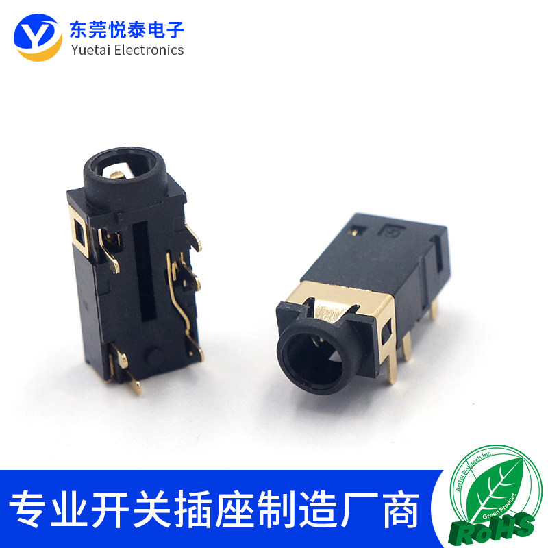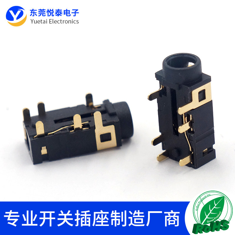(10个)耳机接口PJ-342B双柱插件镀金主播声卡专用音频插座接口