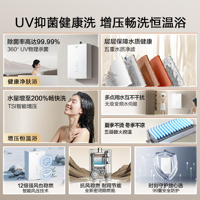 [新品]海尔KM6MAX燃气热水器UV杀菌净水天然气静音水伺服增压恒温