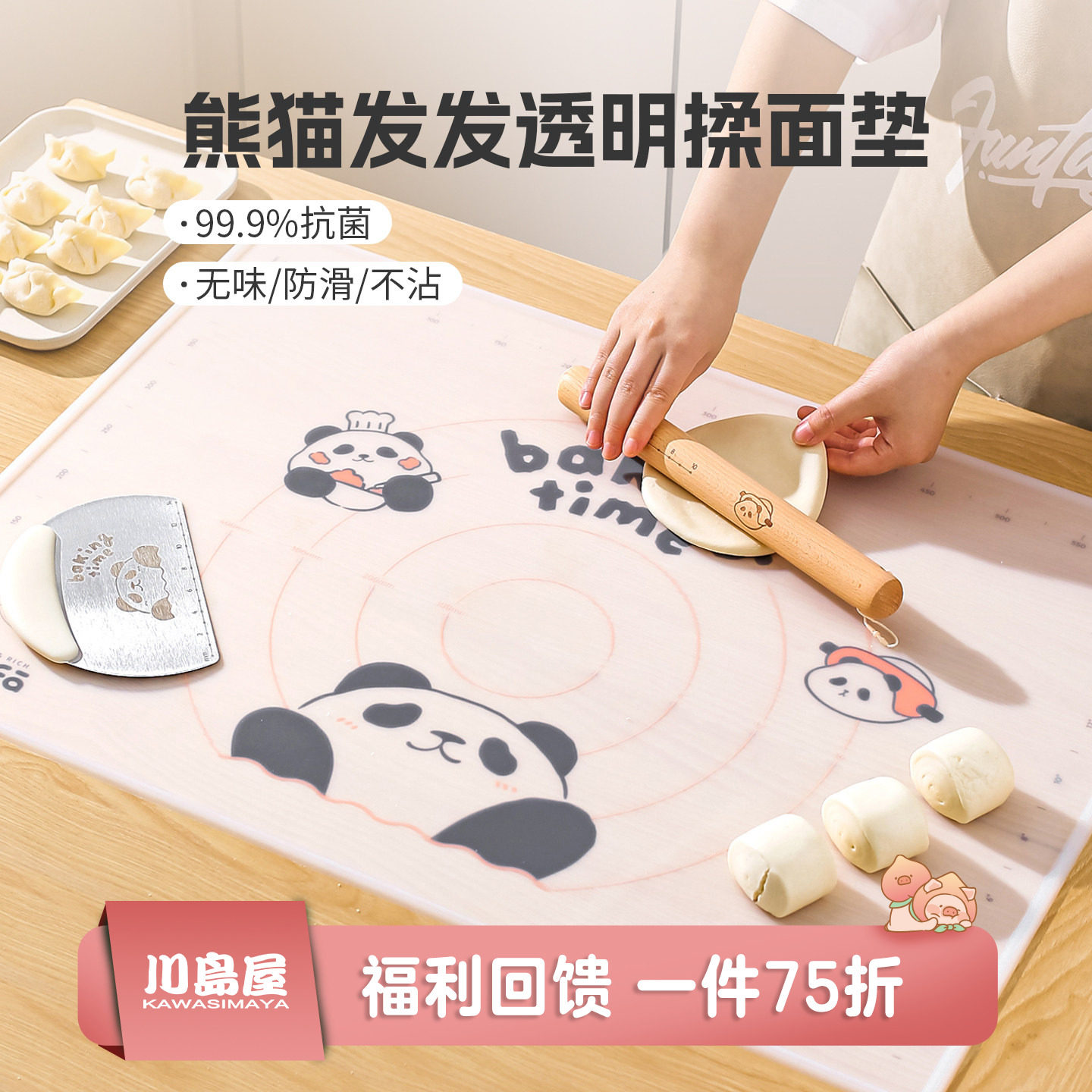 川岛屋熊猫硅胶揉面垫加厚食品级揉面板擀面杖家用三件套烘焙工具