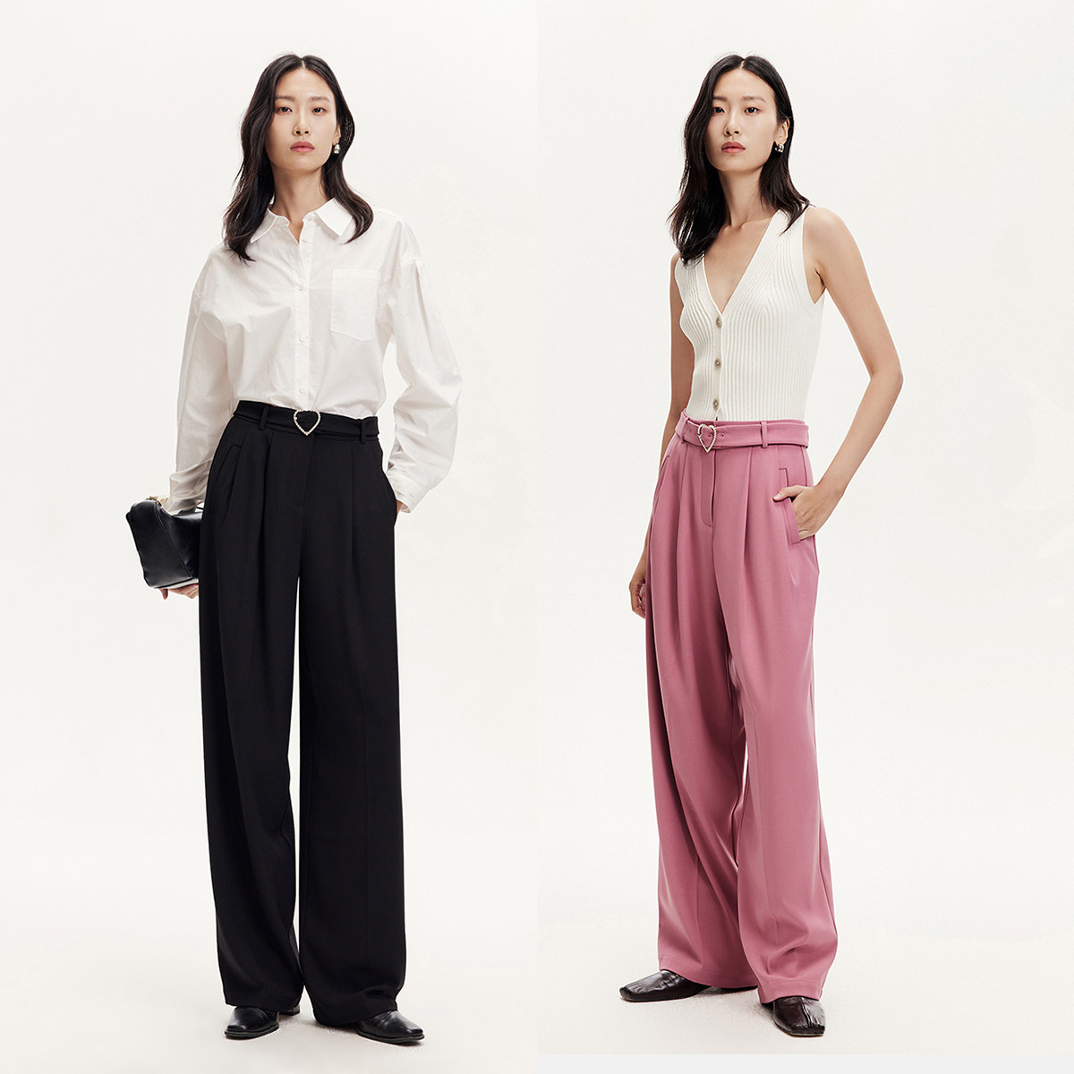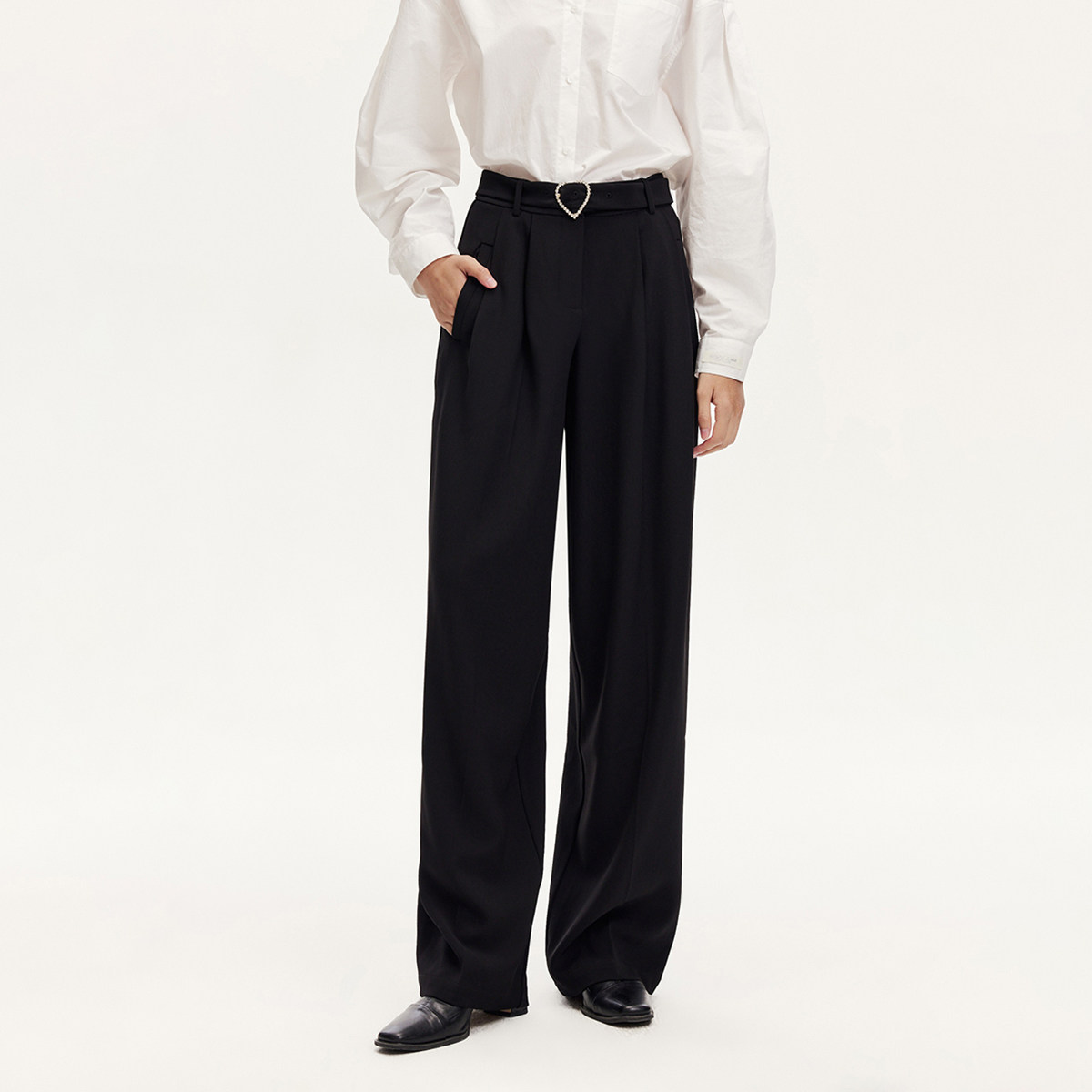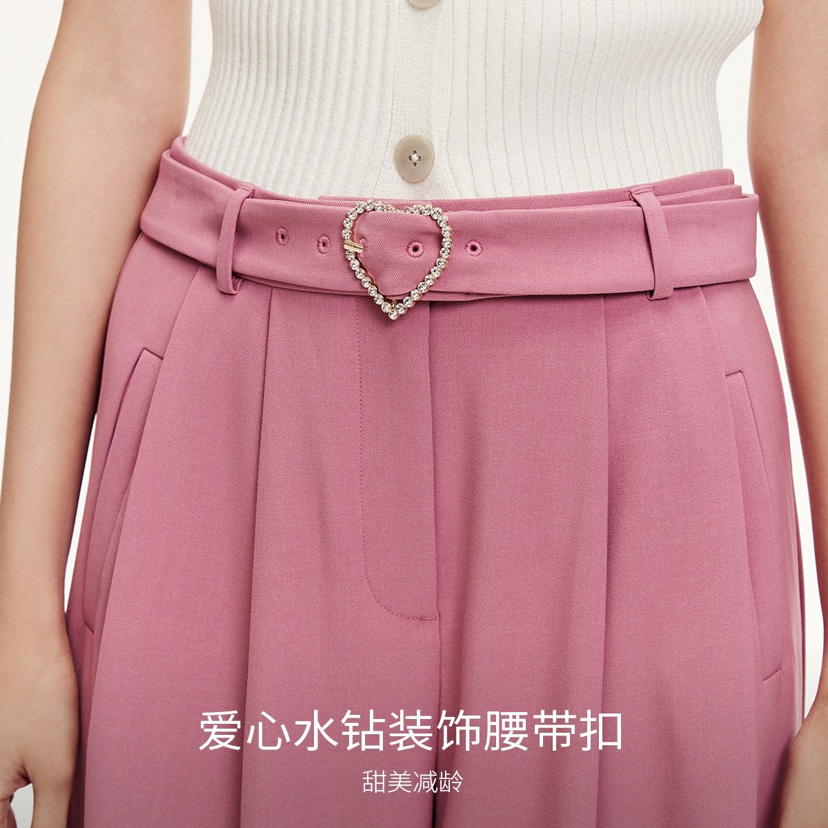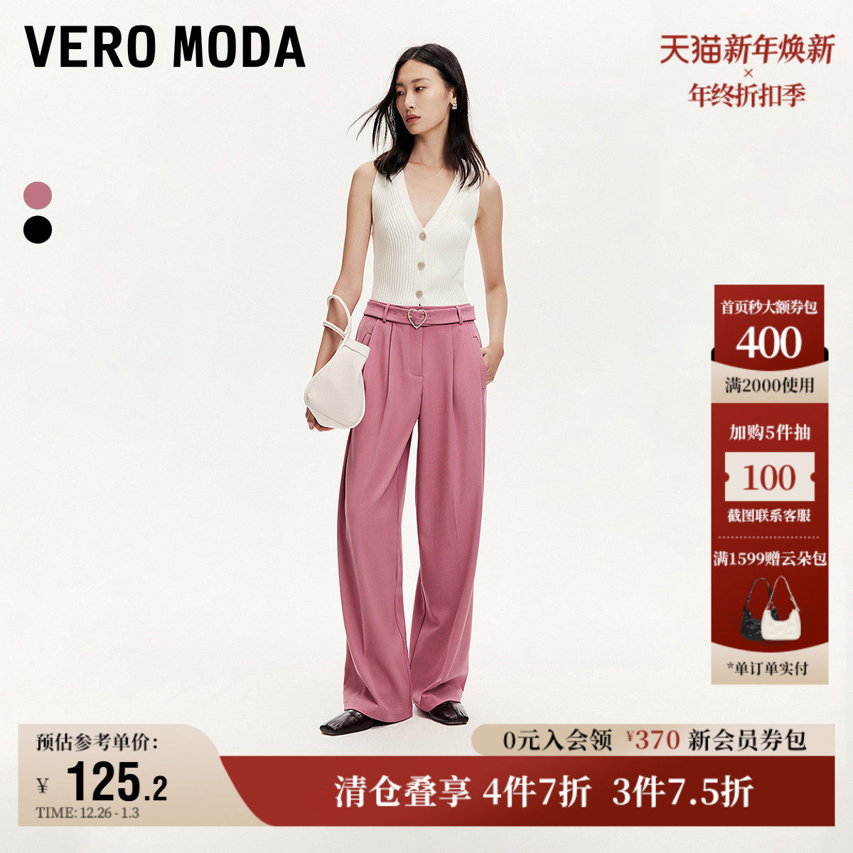 Vero Moda奥莱休闲裤女秋冬新款腰带爱心钻饰压褶阔腿裤裤子流行
