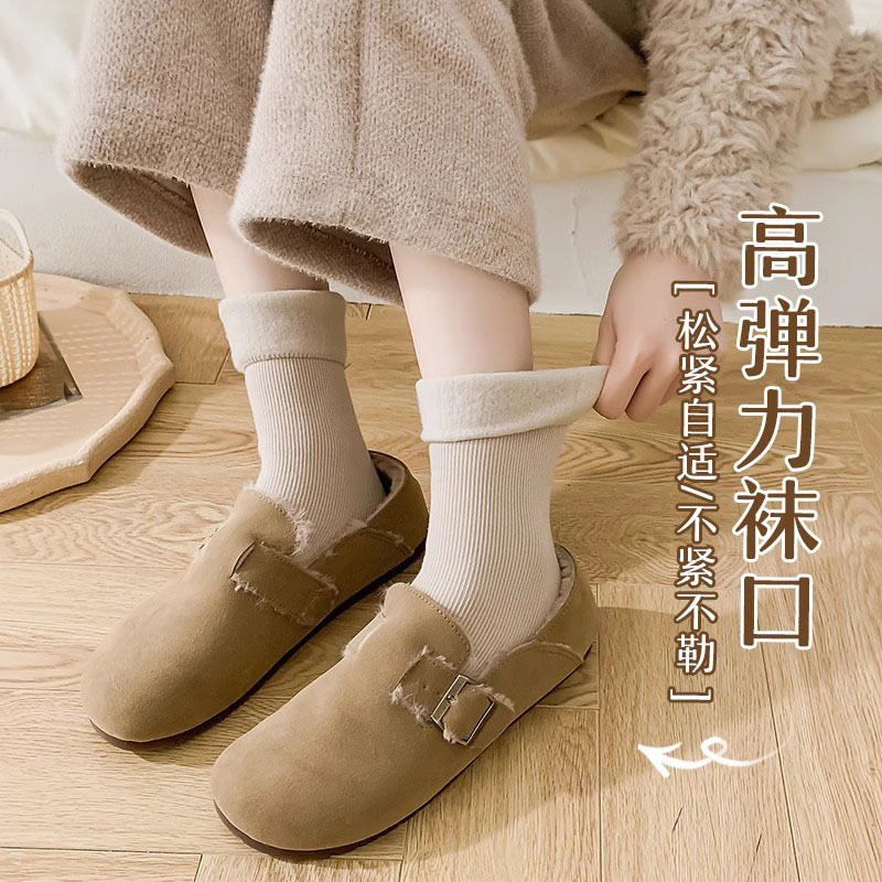 厚袜子女士冬季加绒袜冬天地板睡眠月子袜无骨居家中筒袜毛绒雪地