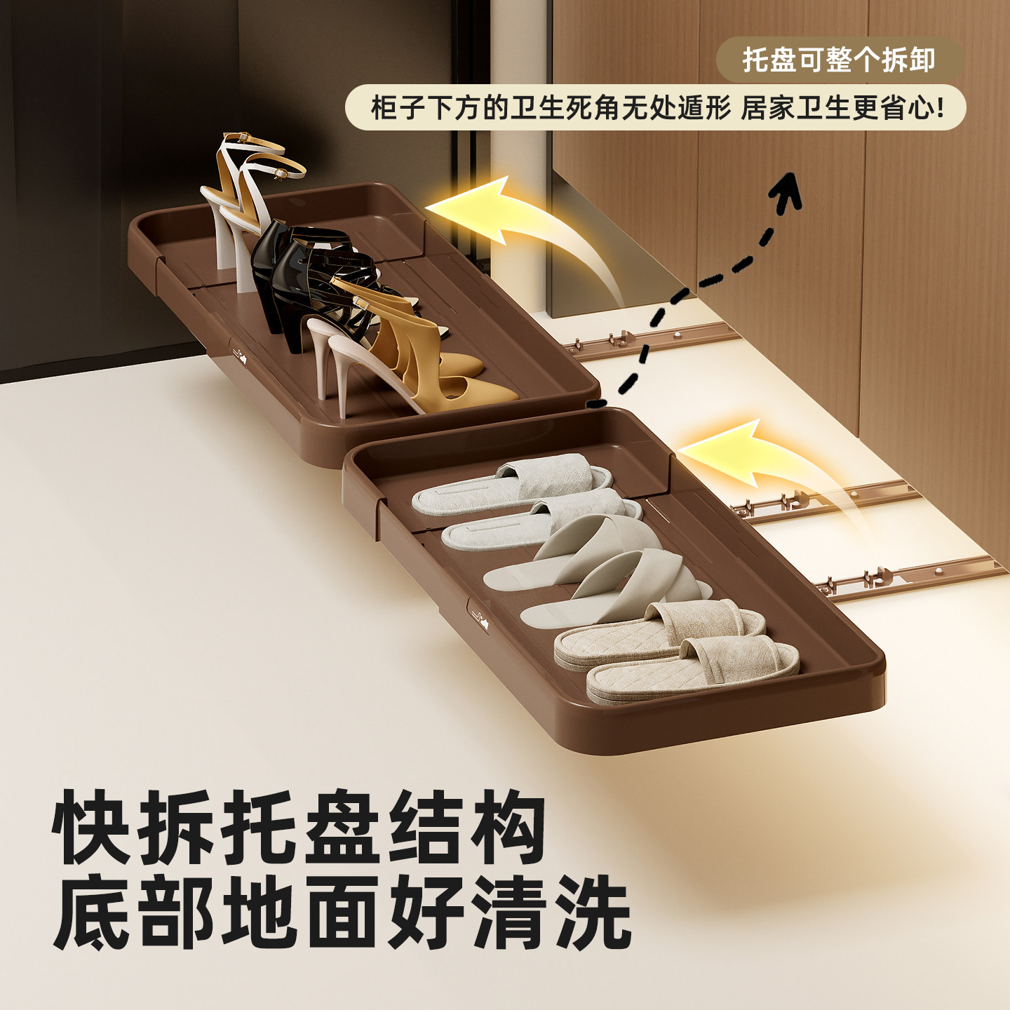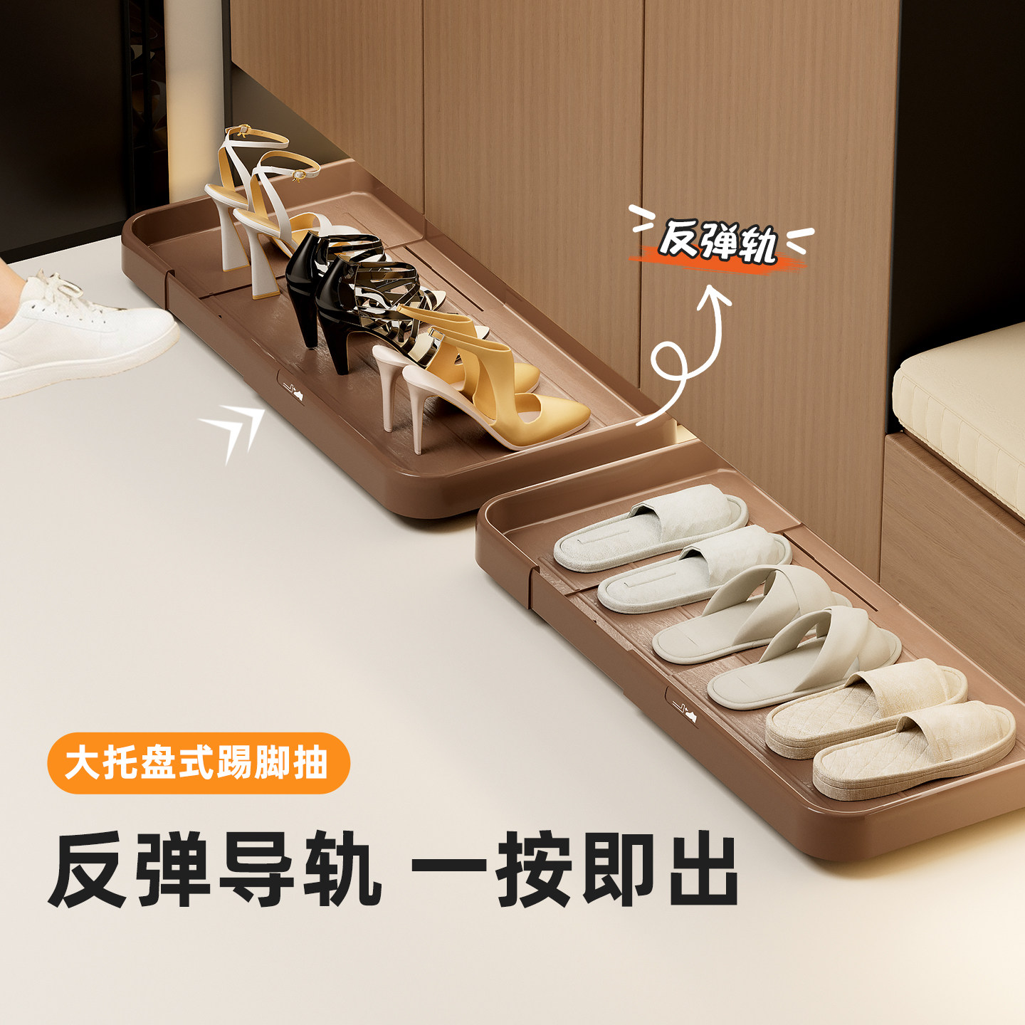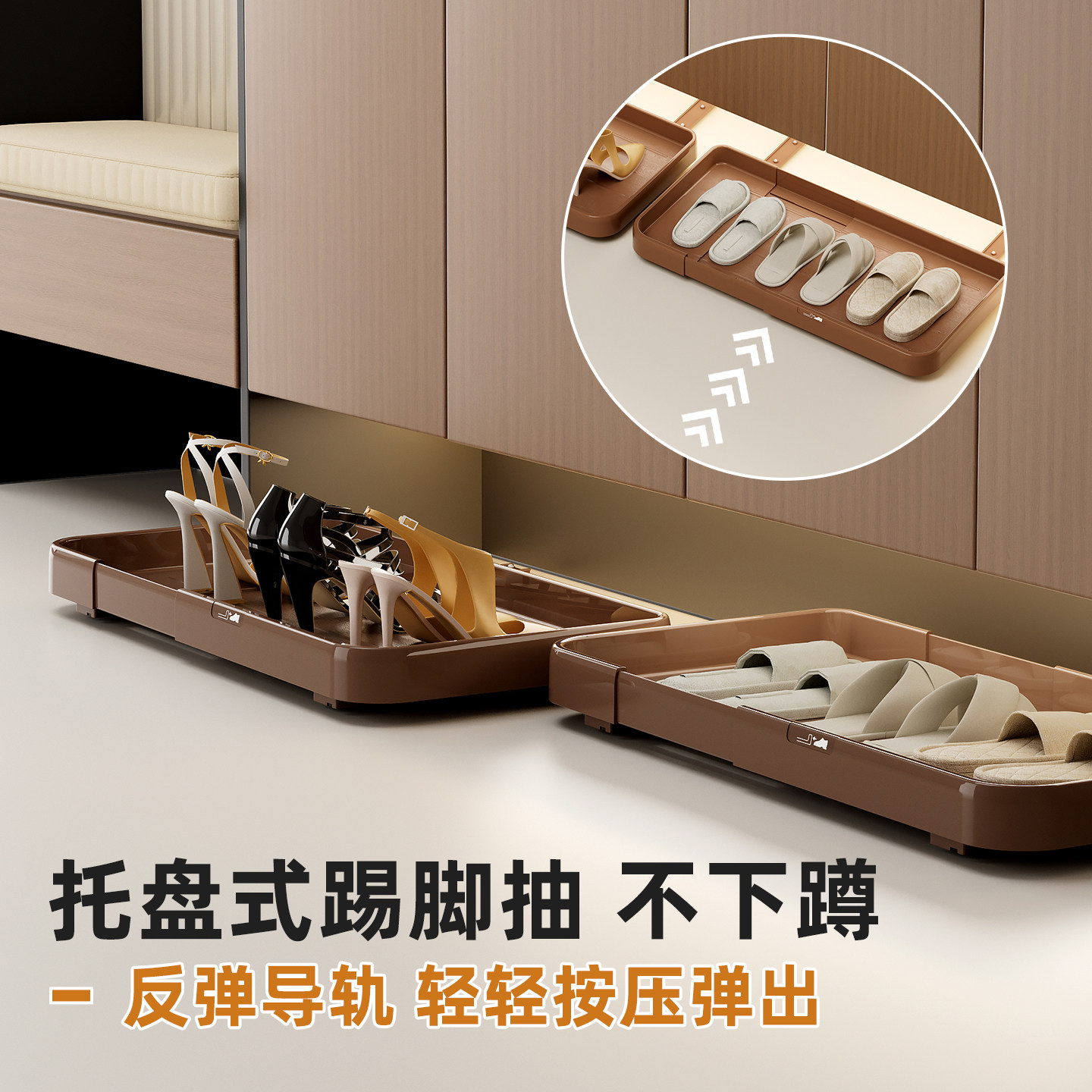踢脚抽屉鞋柜底部托盘家用鞋子收纳反弹滑轨入户门口玄关抽拉鞋架