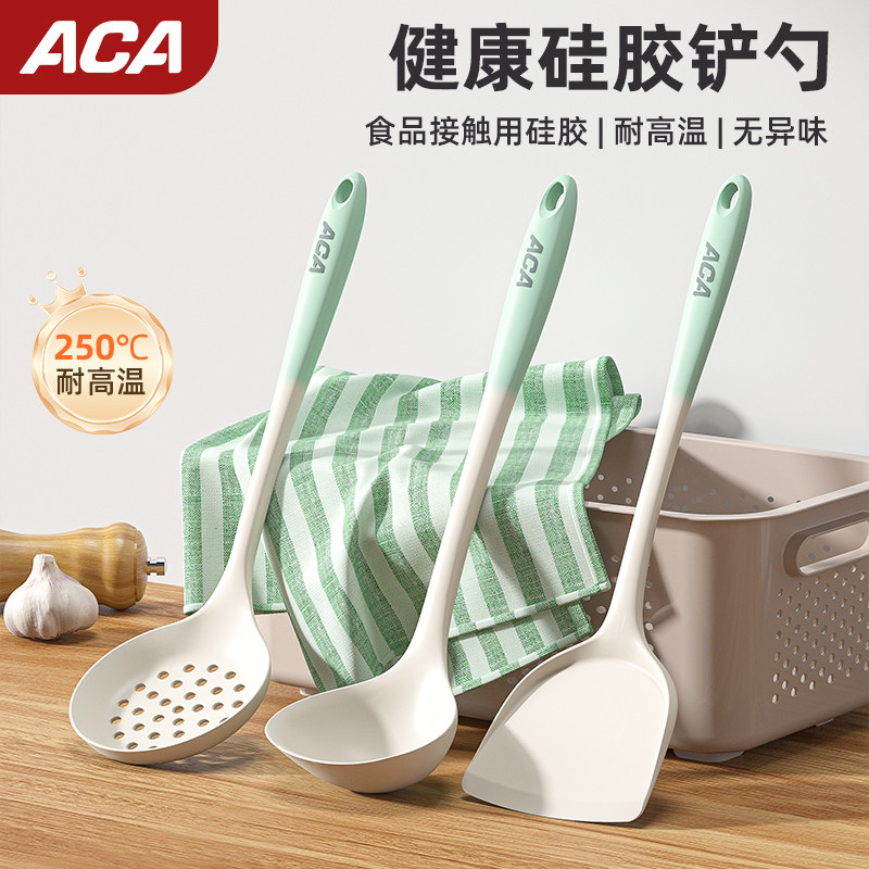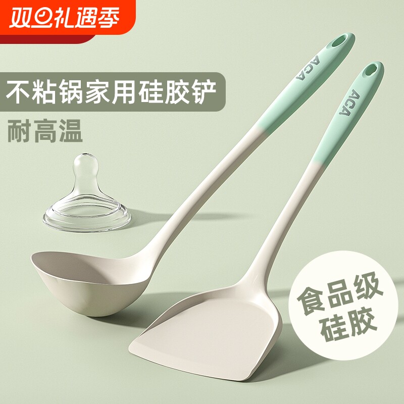 新双拼色硅胶锅铲不粘锅专用食品级耐高温硅炒菜铲子汤勺漏勺套装