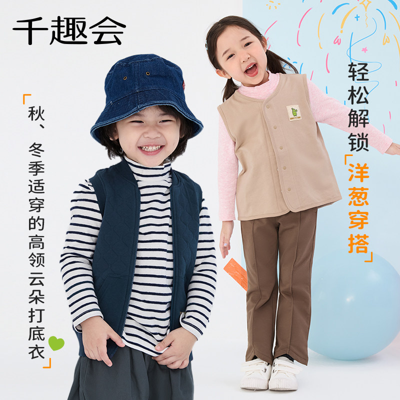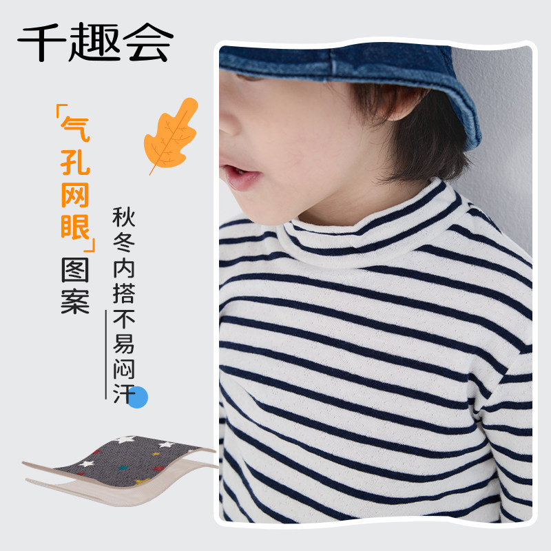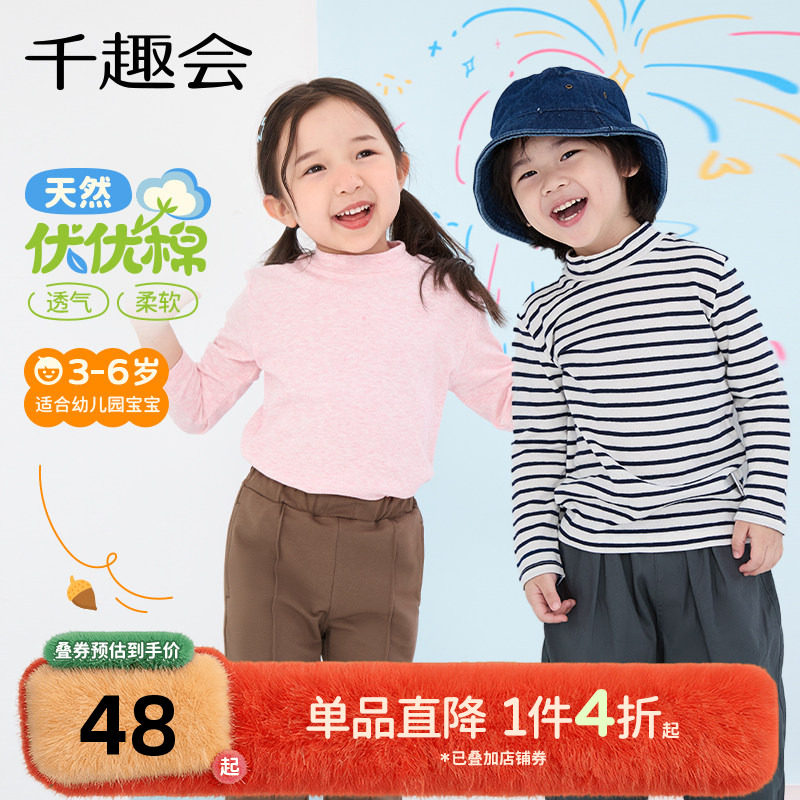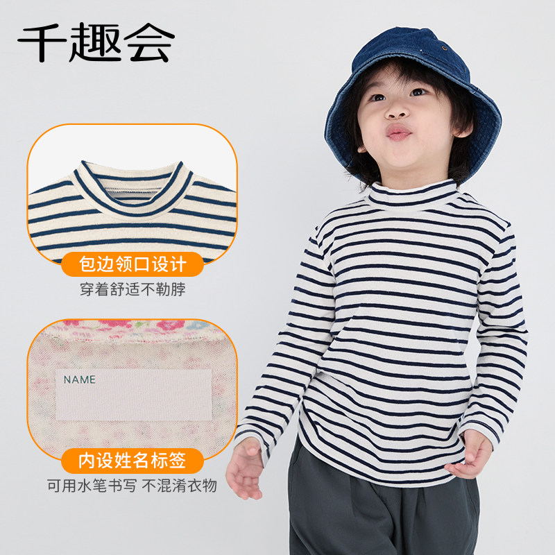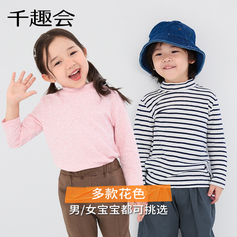 千趣会童装2025春秋儿童长袖T恤半高领上衣男女童贴身纯棉打底衫