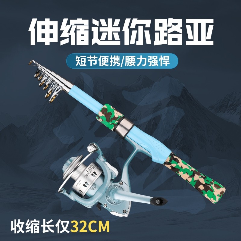伸缩迷你短节路亚竿伸携式路亚竿抛竿32CM超硬纺车轮套装超轻远投