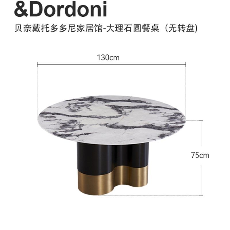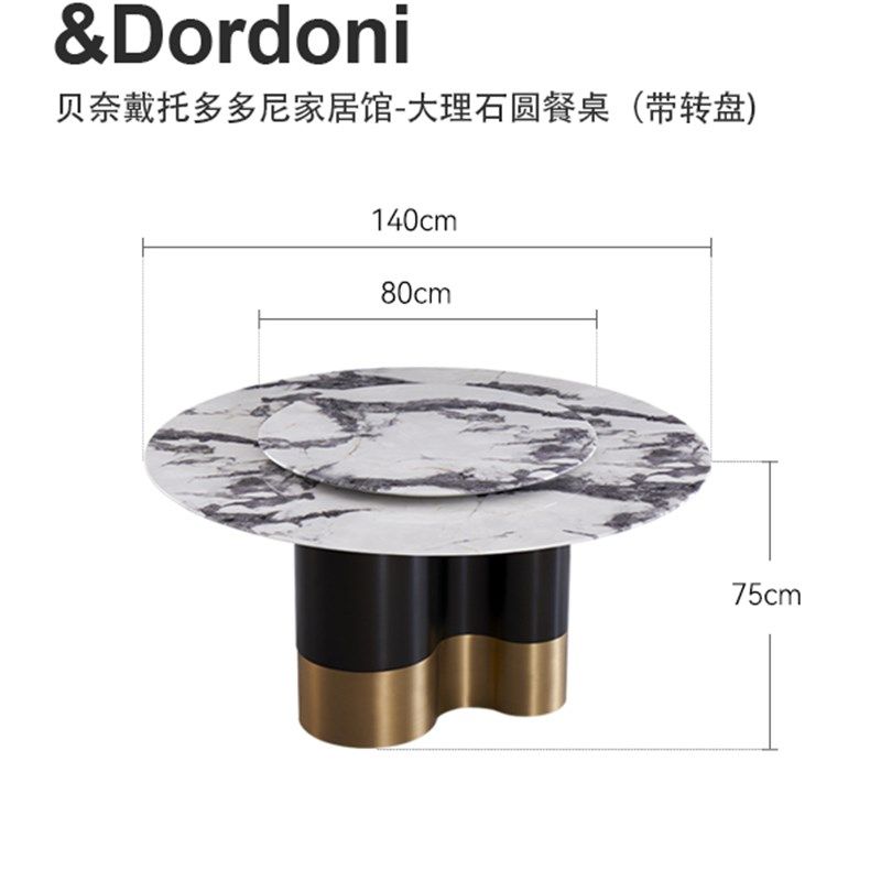 大理石餐桌圆形桌子带转盘家用现代简约圆桌椅组合意式轻奢高级感