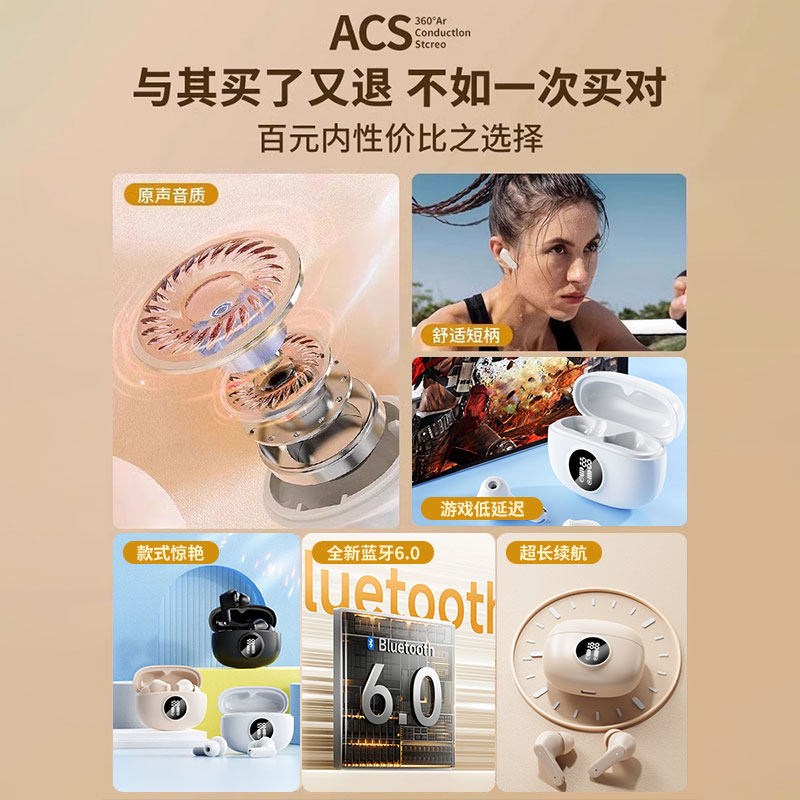 音贝奇Real1Pro无线蓝牙耳机主动降噪入耳式2025新款高音质长续航