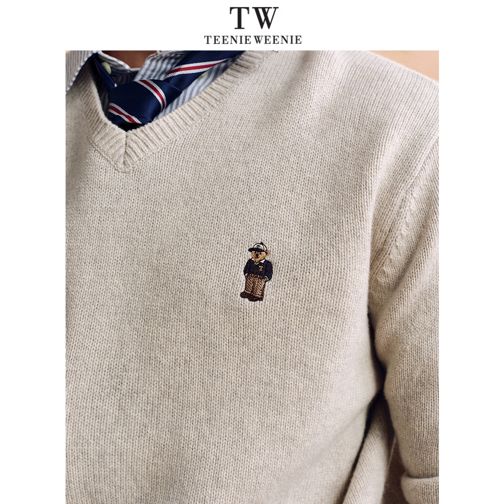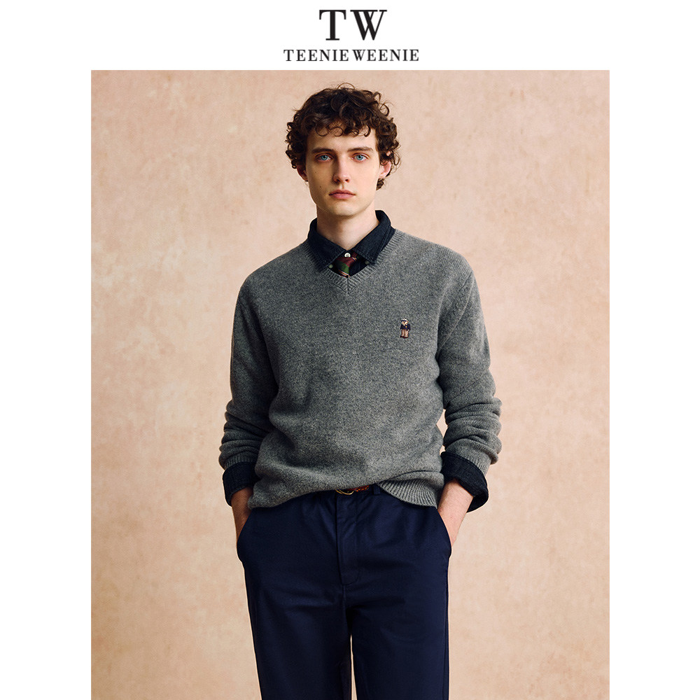 【何洛洛同款】TeenieWeenie小熊男装保暖V领毛衣上衣针织衫
