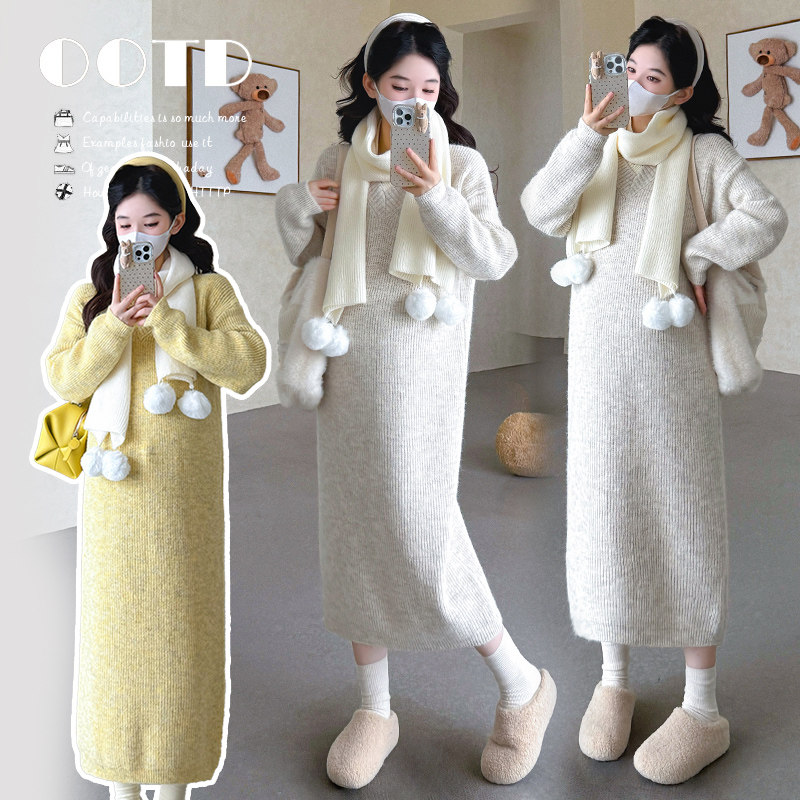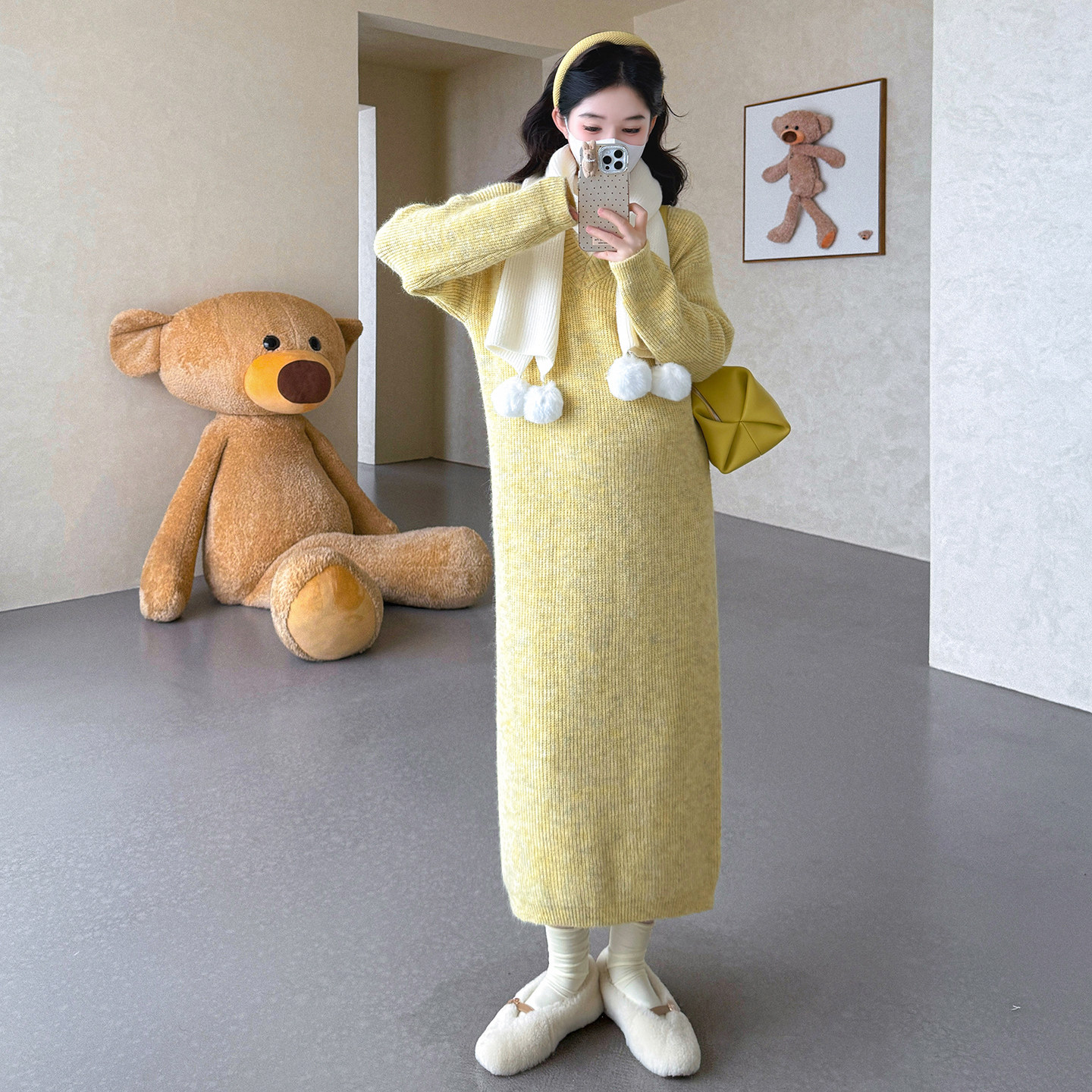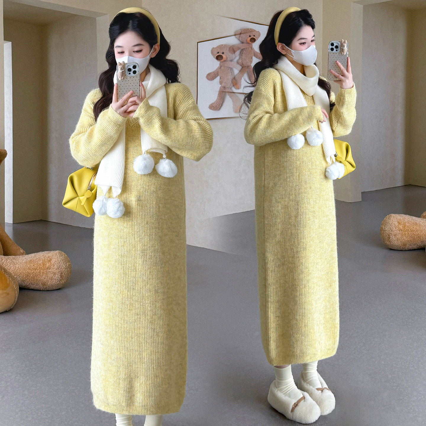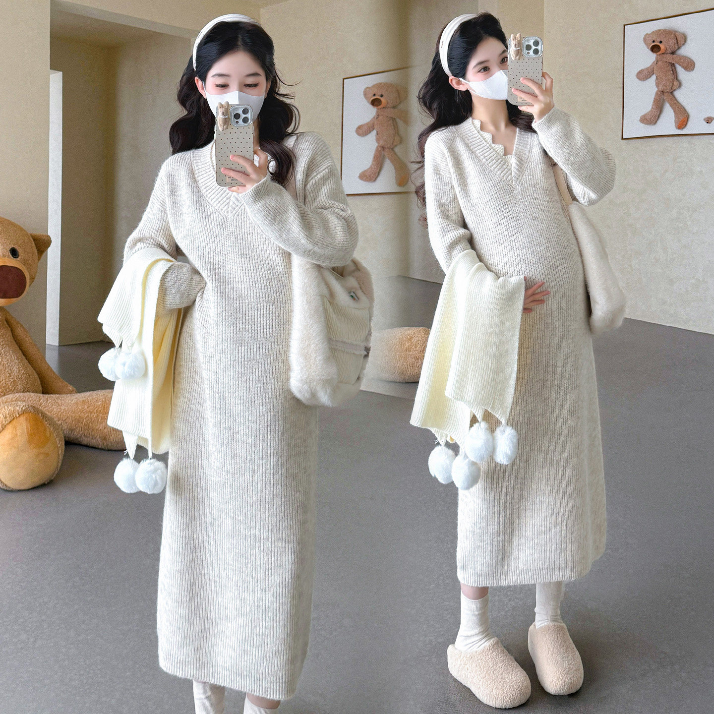 婧麒高级感孕妇装孕妇连衣裙冬装孕期新款孕妇裙子围巾洋气两件套