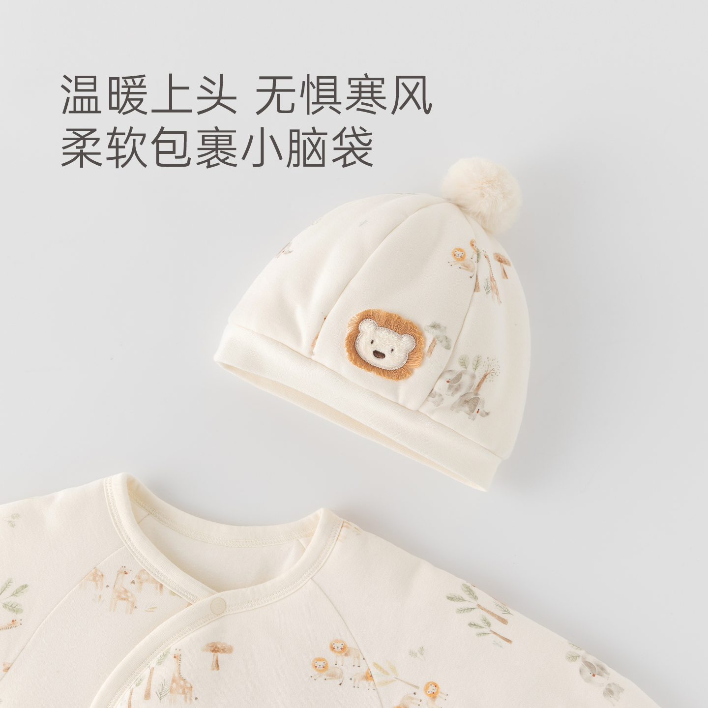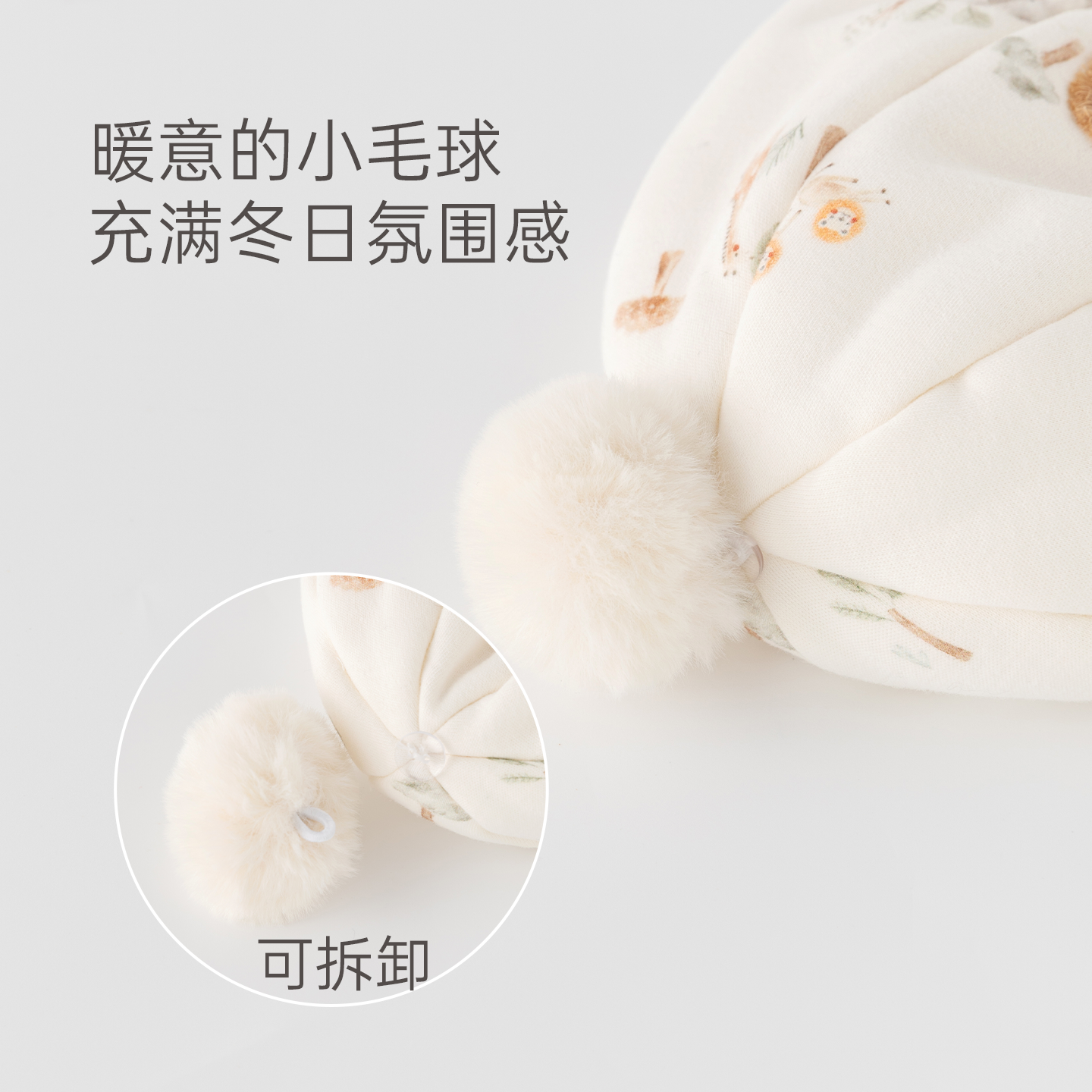 木生棉新生儿胎帽冬季宝宝夹棉保暖护囟门帽婴儿防风加厚护耳帽子