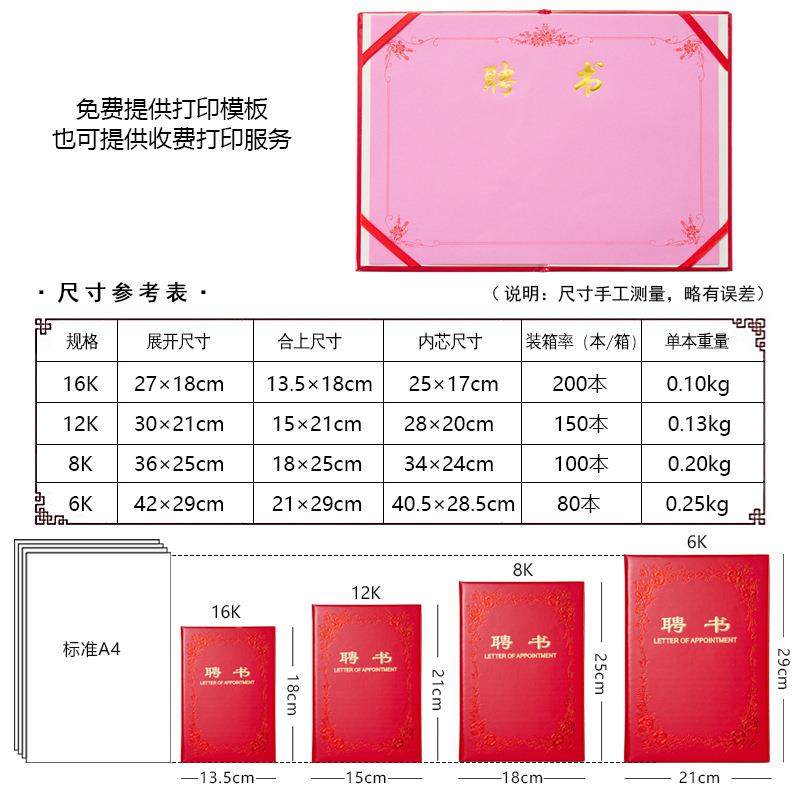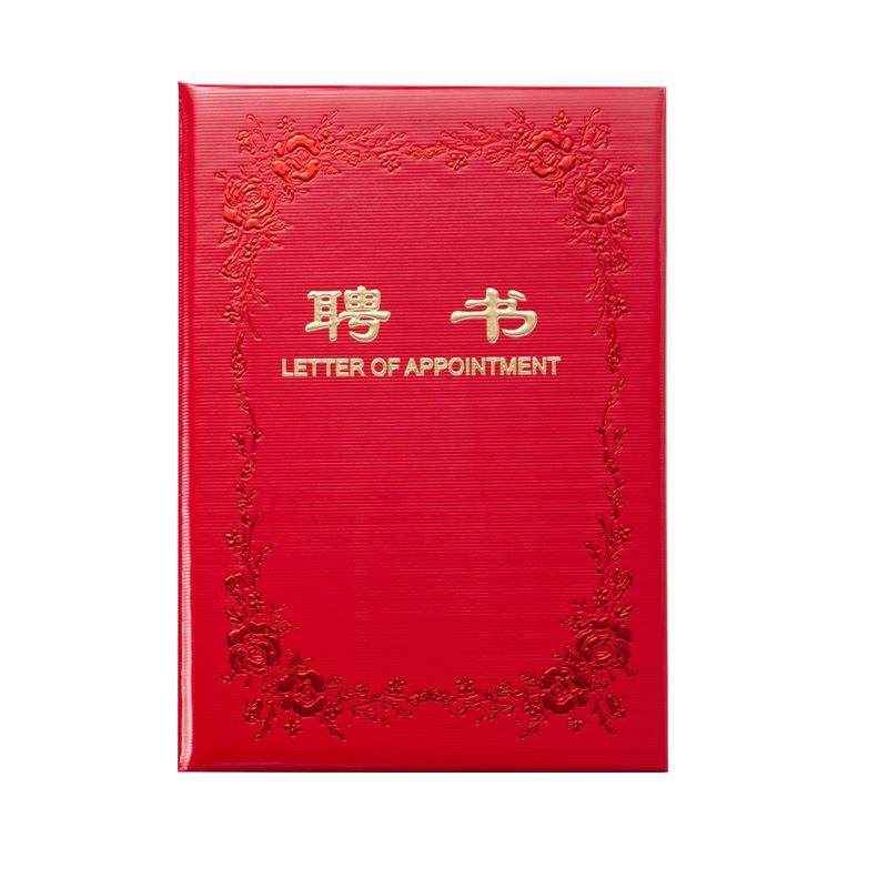 12K8K纸质浮雕聘书定做配内芯 聘任书招聘证书封面外壳定制定制