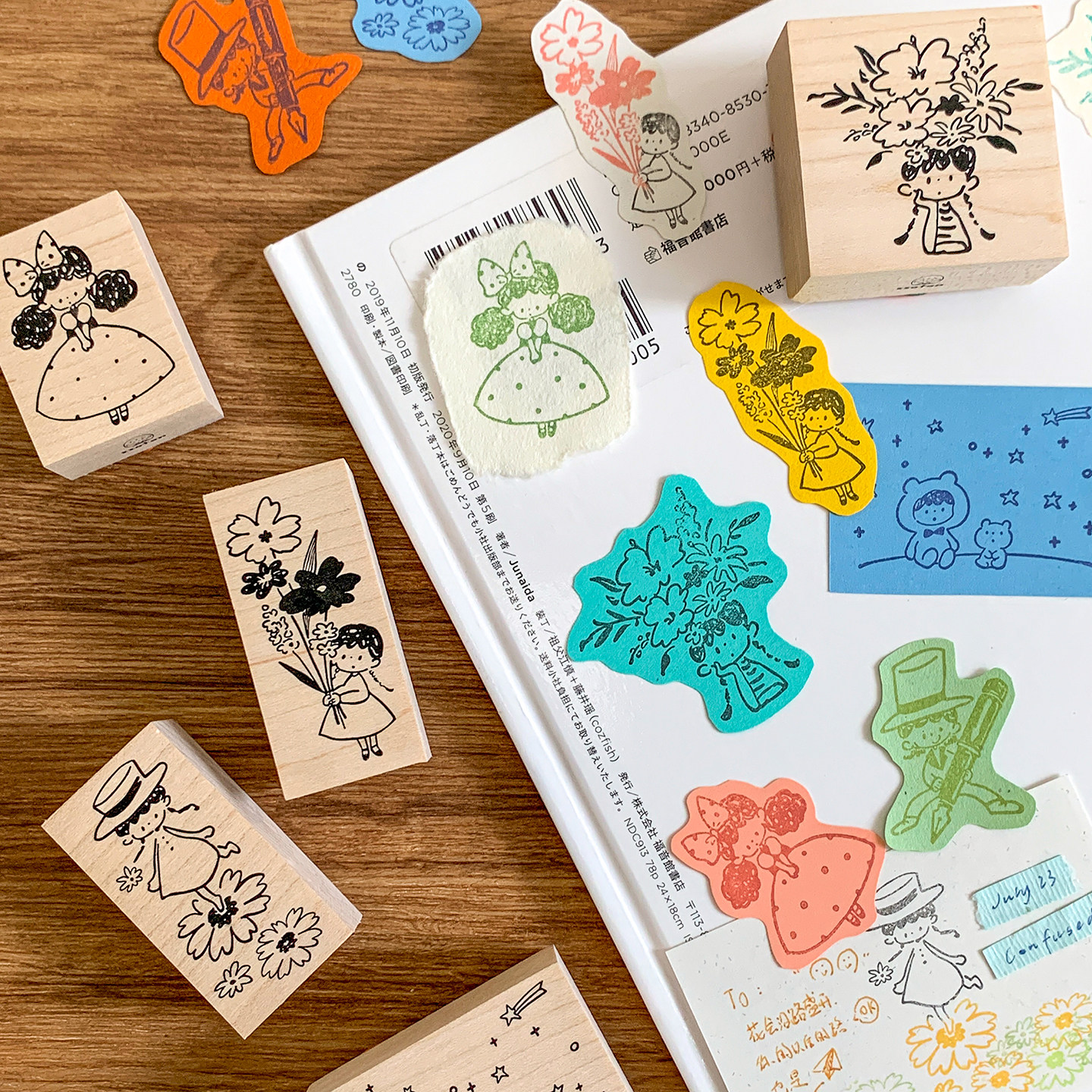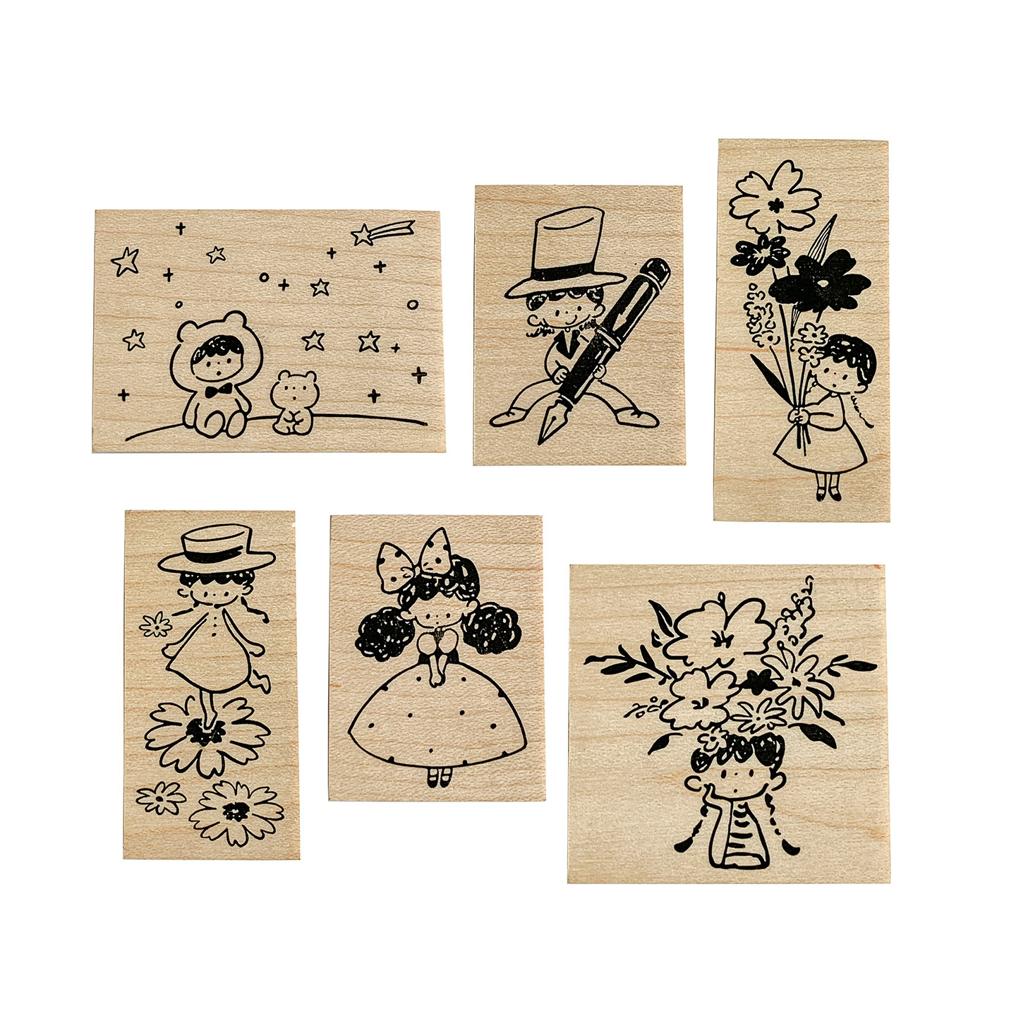 卓大王【木制印章】枫木星空裙子港币花朵复古手帐实木章木质