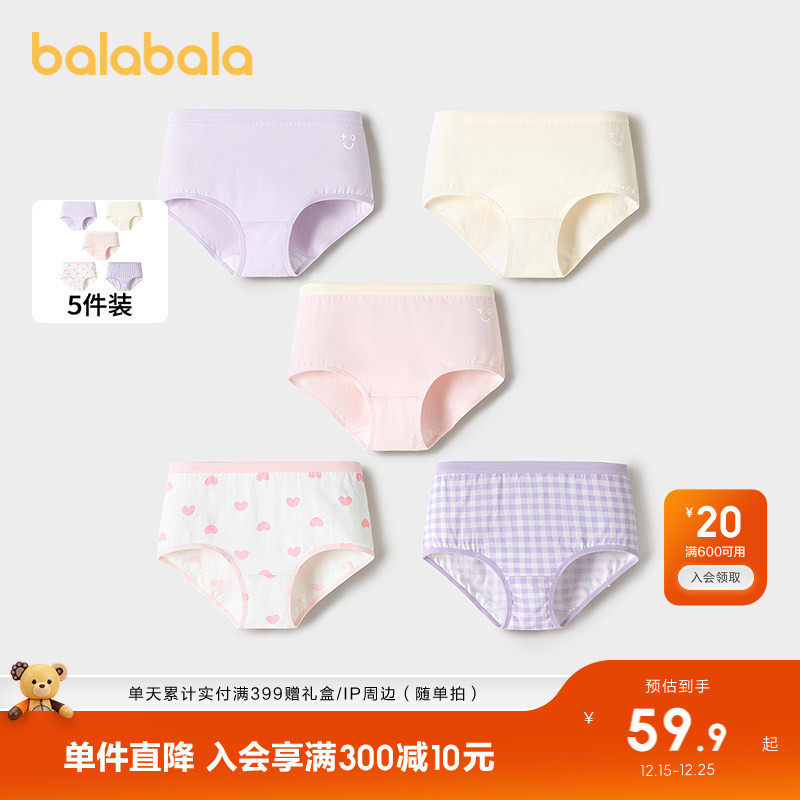 巴拉巴拉儿童内裤棉三角短裤女童男童亲肤萌趣中幼童不夹PP五条装