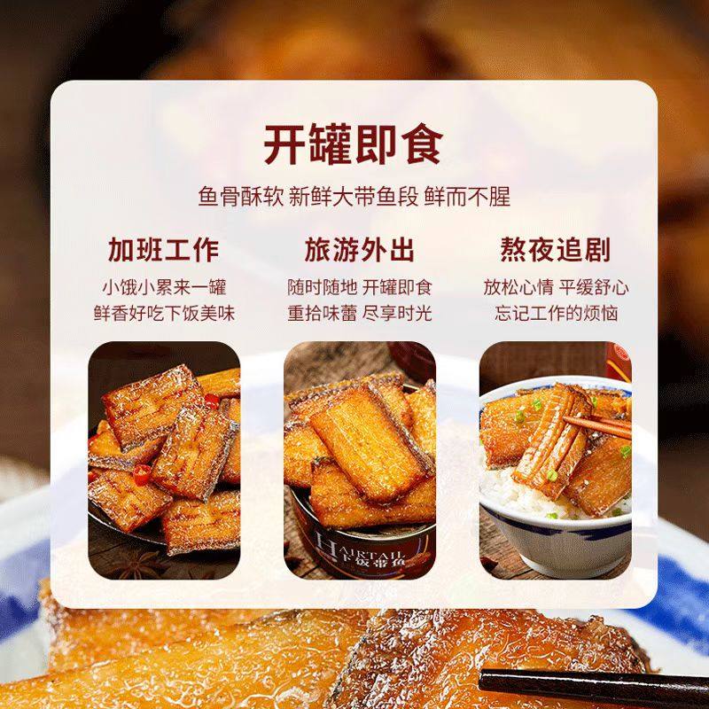 五香带鱼罐头海鲜鱼肉中段即食熟食下饭鱼零食品批发整箱香辣