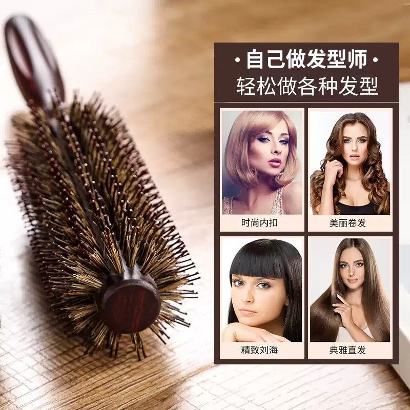 卷发梳子猪鬃毛圆筒滚梳内扣长直发吹头发造型卷梳家用发廊专业女