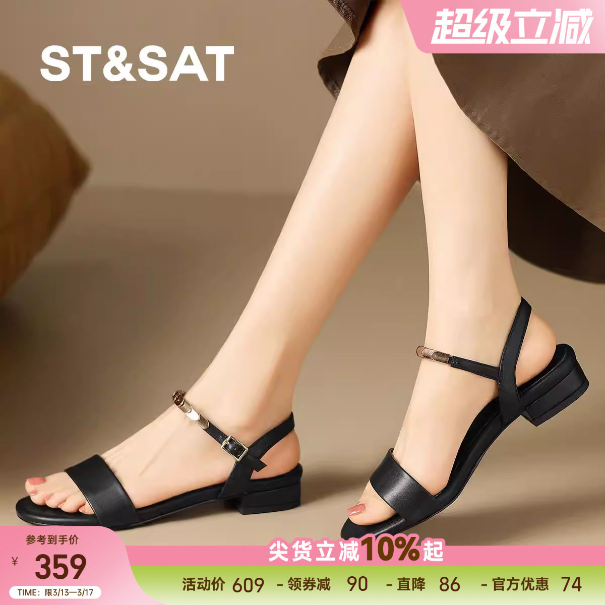 星期六凉鞋女2025春季新款仙女风露趾鞋配裙子一字带凉拖外穿