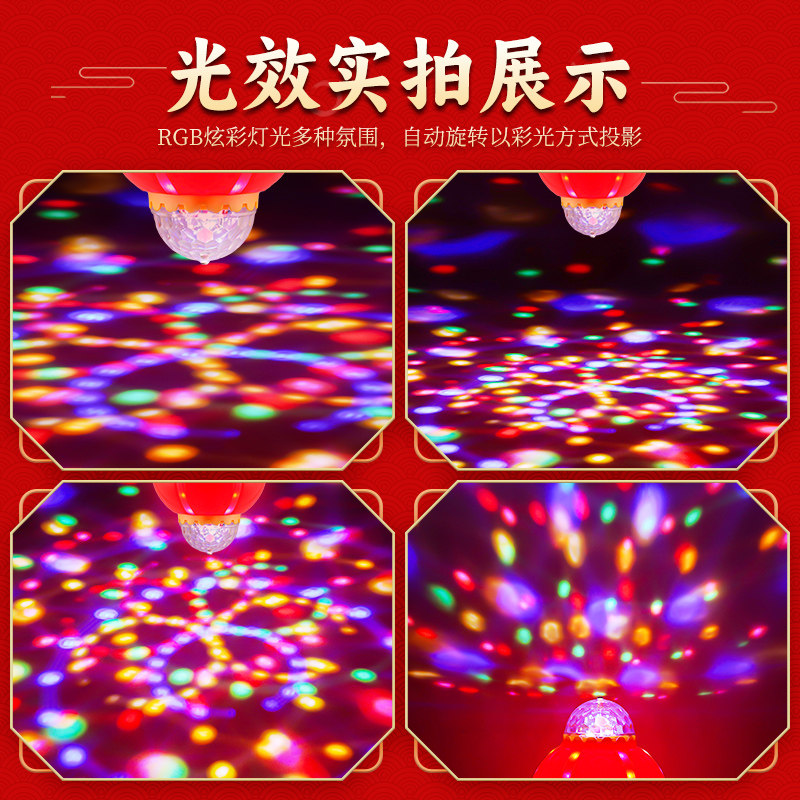 2026新年七彩旋转灯笼e27螺口led灯泡家用氛围跳舞灯节能变色彩灯