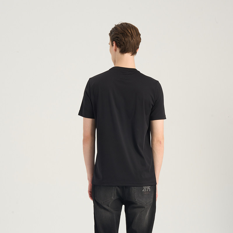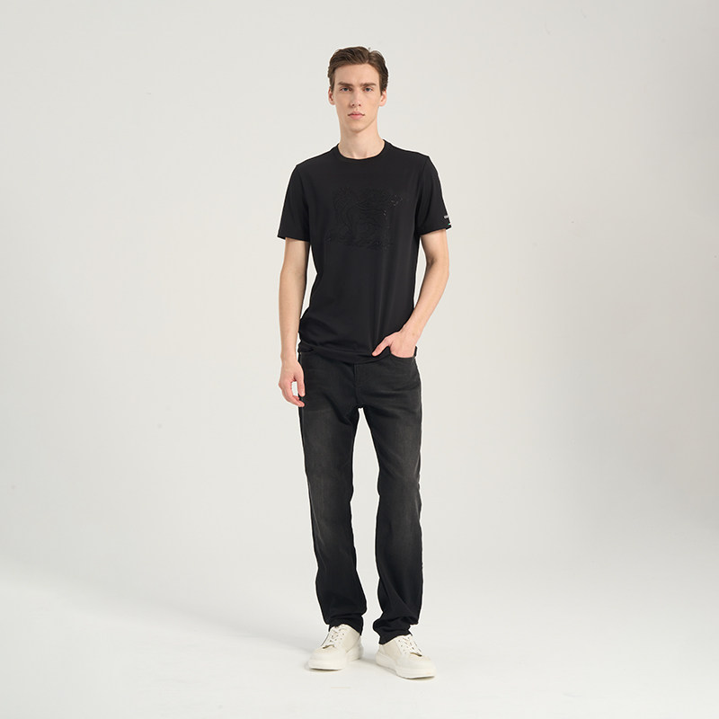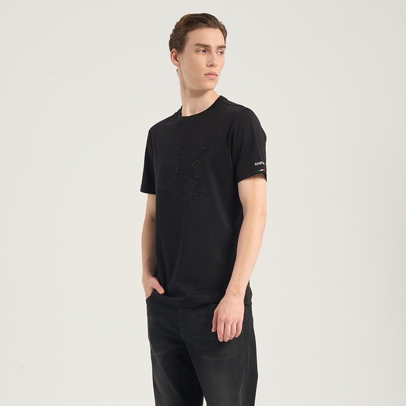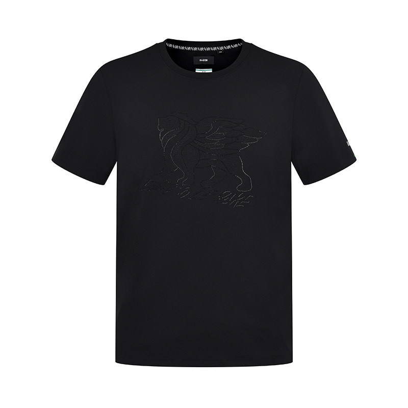 RARE威雅男装 夏季新款黑色圆领T恤飞狮立体压印男士透气短袖