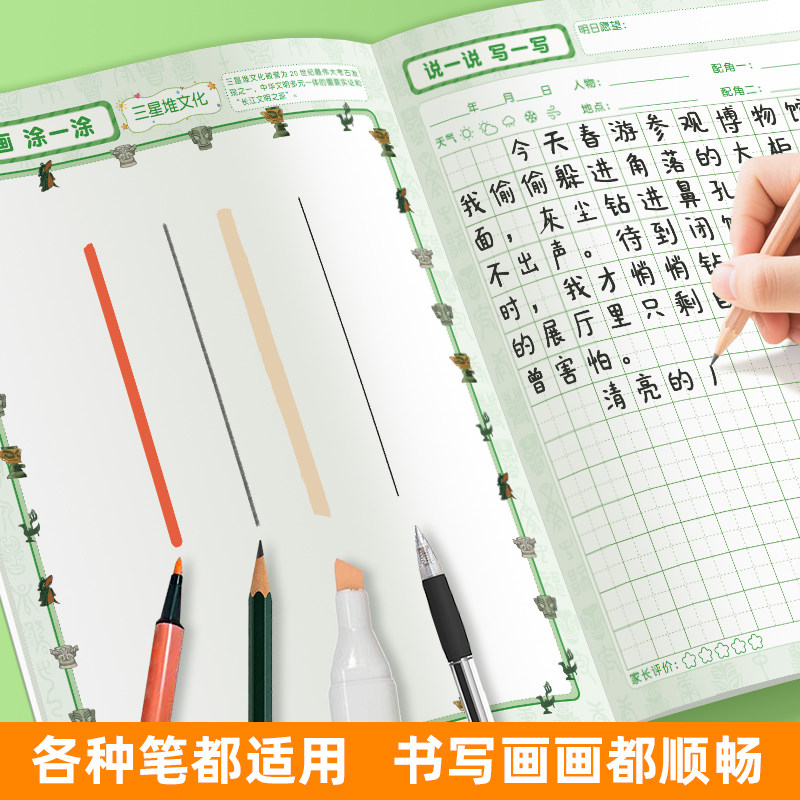 绘画日记本拼音田字格小方格日记本绘画本全套幼儿园儿童看图写话一天一画小学生语文思维训练创造力培养绘本