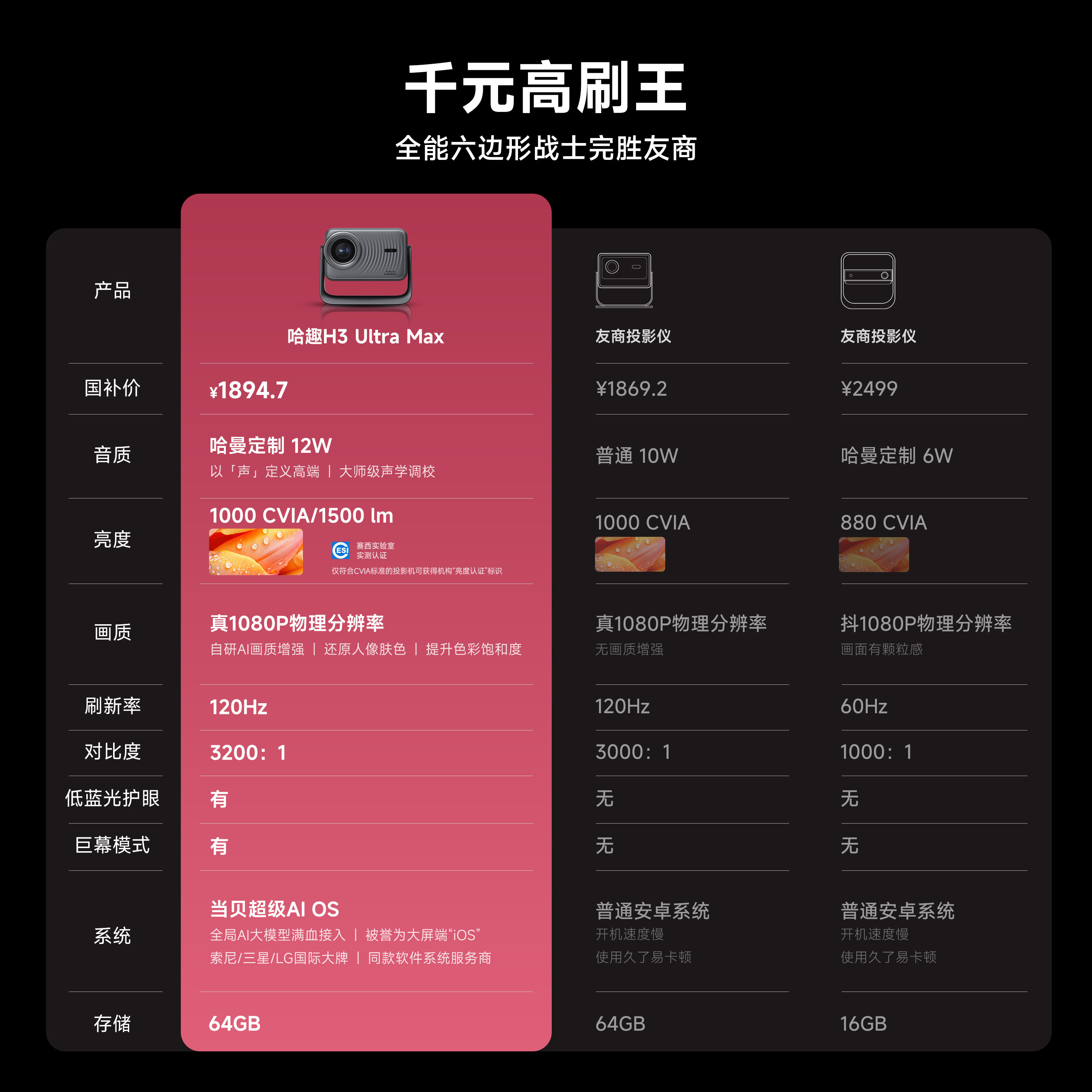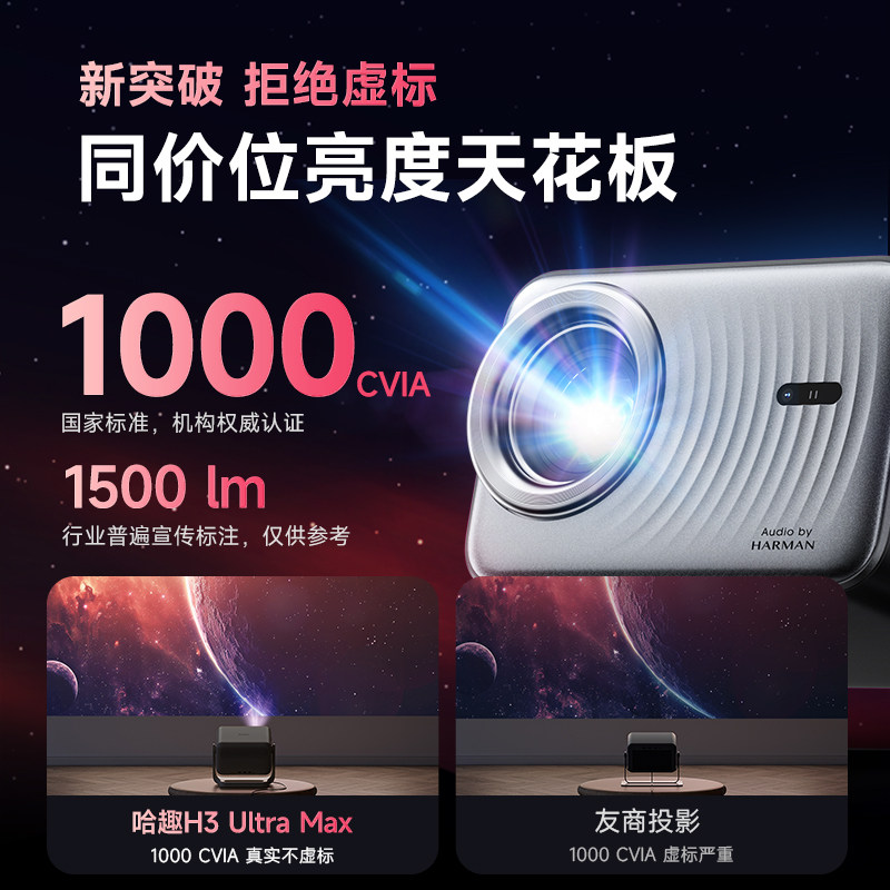 【哈曼联名】哈趣H3UltraMax投影仪家用超高清4K解码120hz高刷2025新款1080P客厅卧室智能影院可连手机投屏
