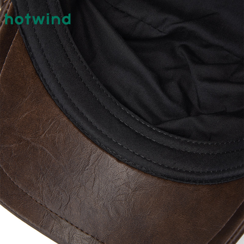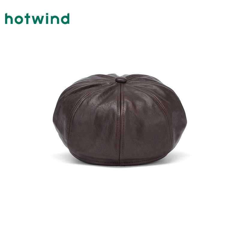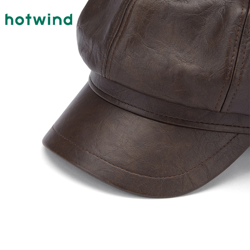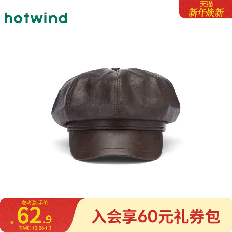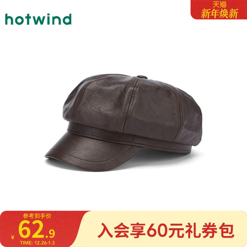 热风女士帽子文字八角帽2025年秋季新款复古时髦pu皮显脸小艺术帽