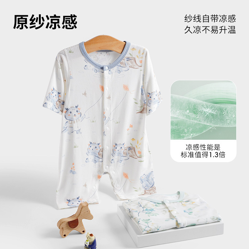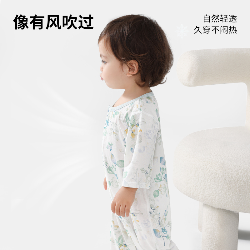 贝肽斯婴儿衣服夏季薄款连体衣七分袖空调服宝宝中袖新生儿睡衣