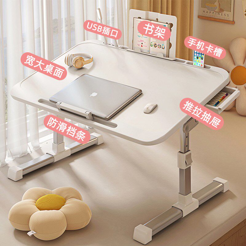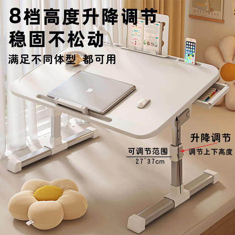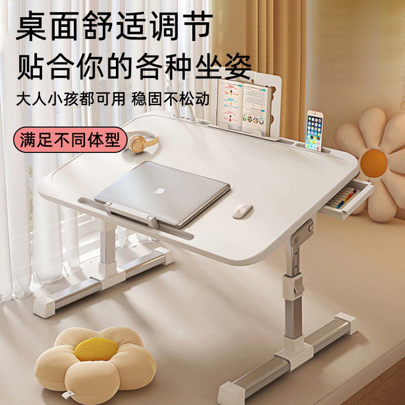 可升降折叠床上小桌子简约宿舍学生写字床上书桌学习调节高度支架家用卧室坐地飘窗懒人笔记本电脑办公小桌板