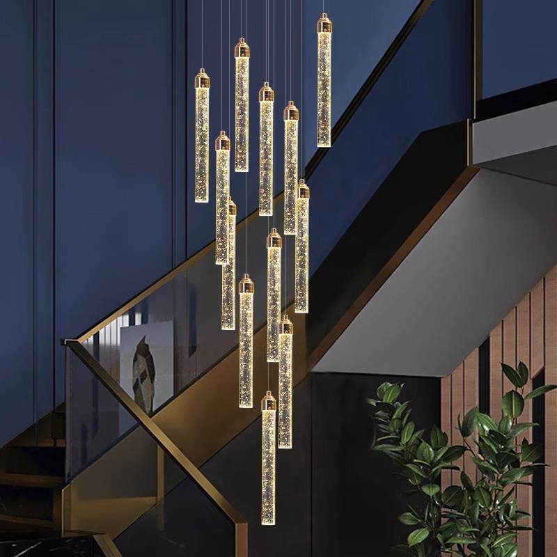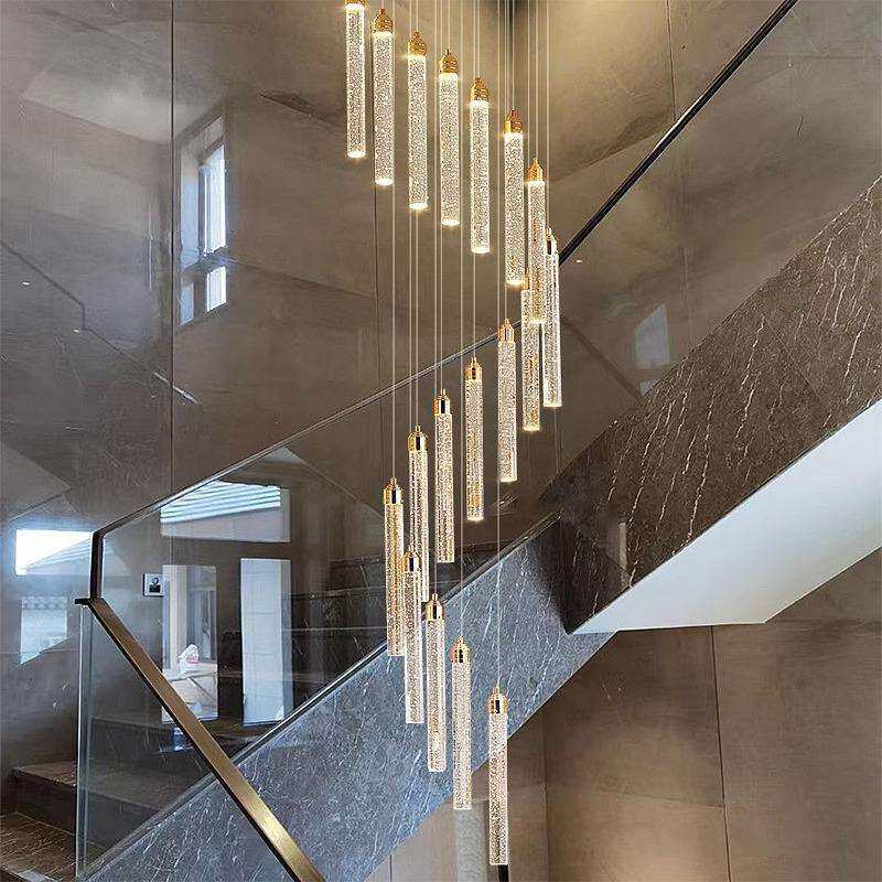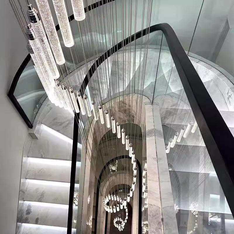 复式楼客厅水晶吊灯轻奢自建房旋转楼梯长吊灯loft公寓别墅灯具