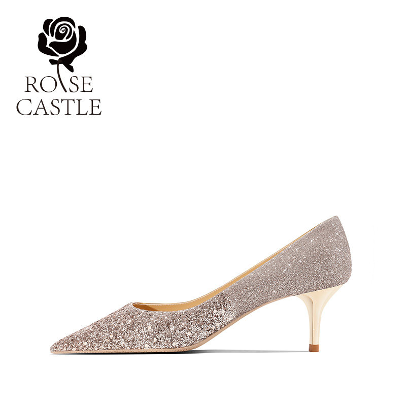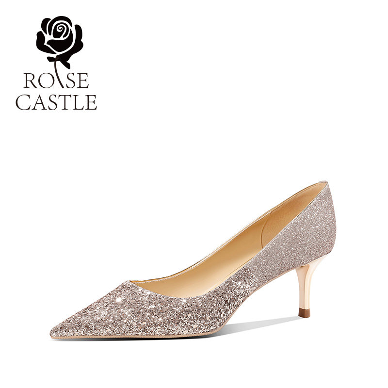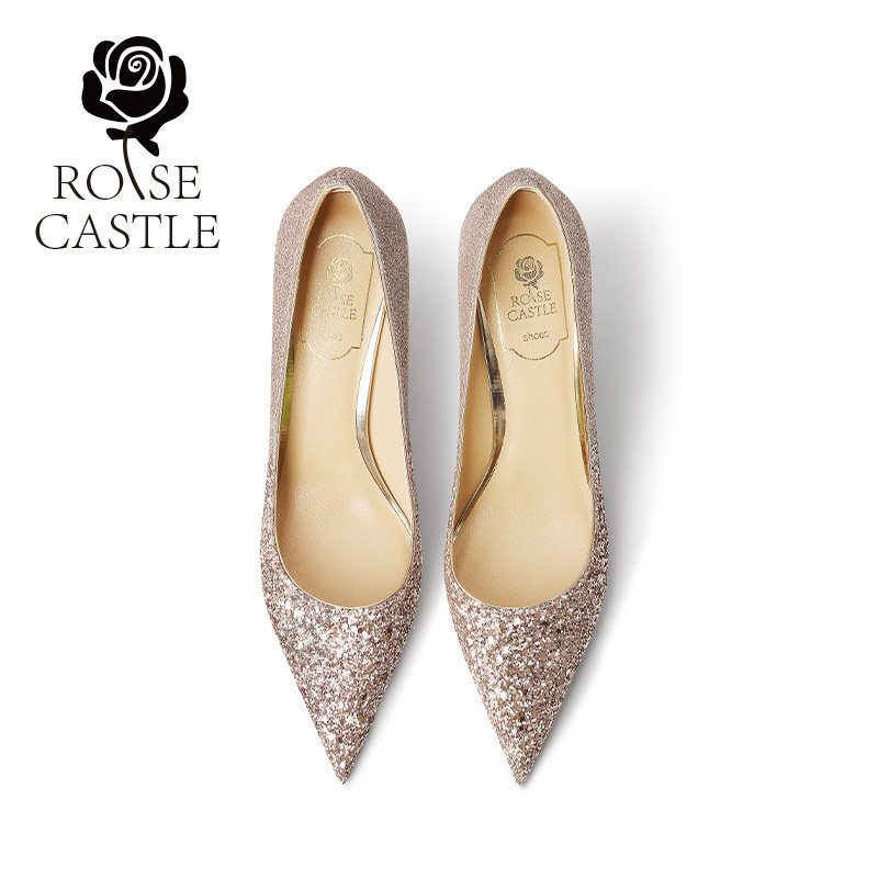 rosecastle婚宴鞋水晶婚鞋2022年春季新款金色不累脚日常可穿单鞋
