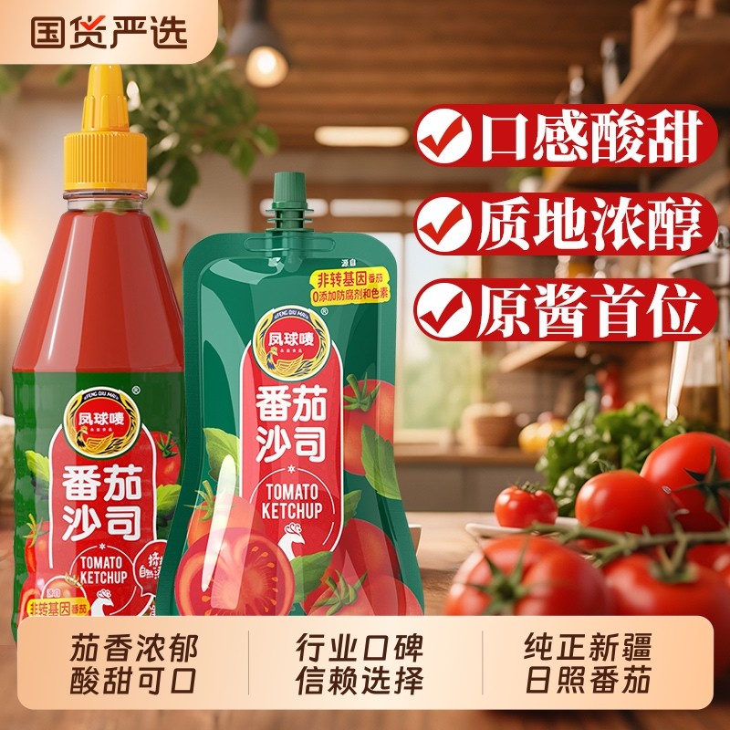 凤球唛番茄酱沙司新疆沙拉酱挤压瓶装家用手抓饼意面薯条蘸酱商用