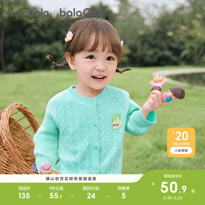 巴拉巴拉童装女童薄开衫宝宝毛衫新款春装针织衫甜美儿童毛衣