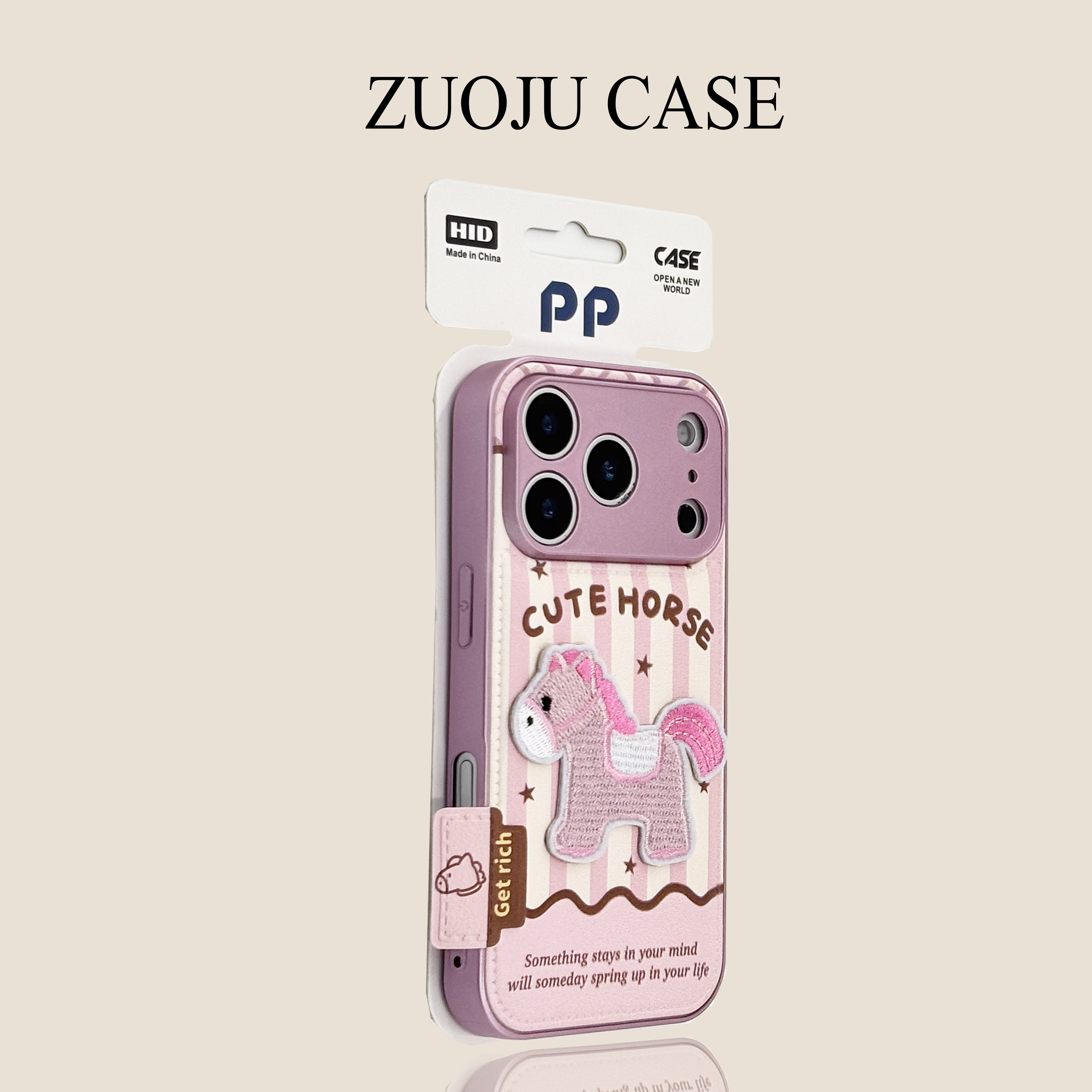 粉鼓包皮纹网格刺绣小马苹果17手机壳新款iphone17promax全包硅胶套苹果16ProMax小众苹果15pro防摔女款14pm