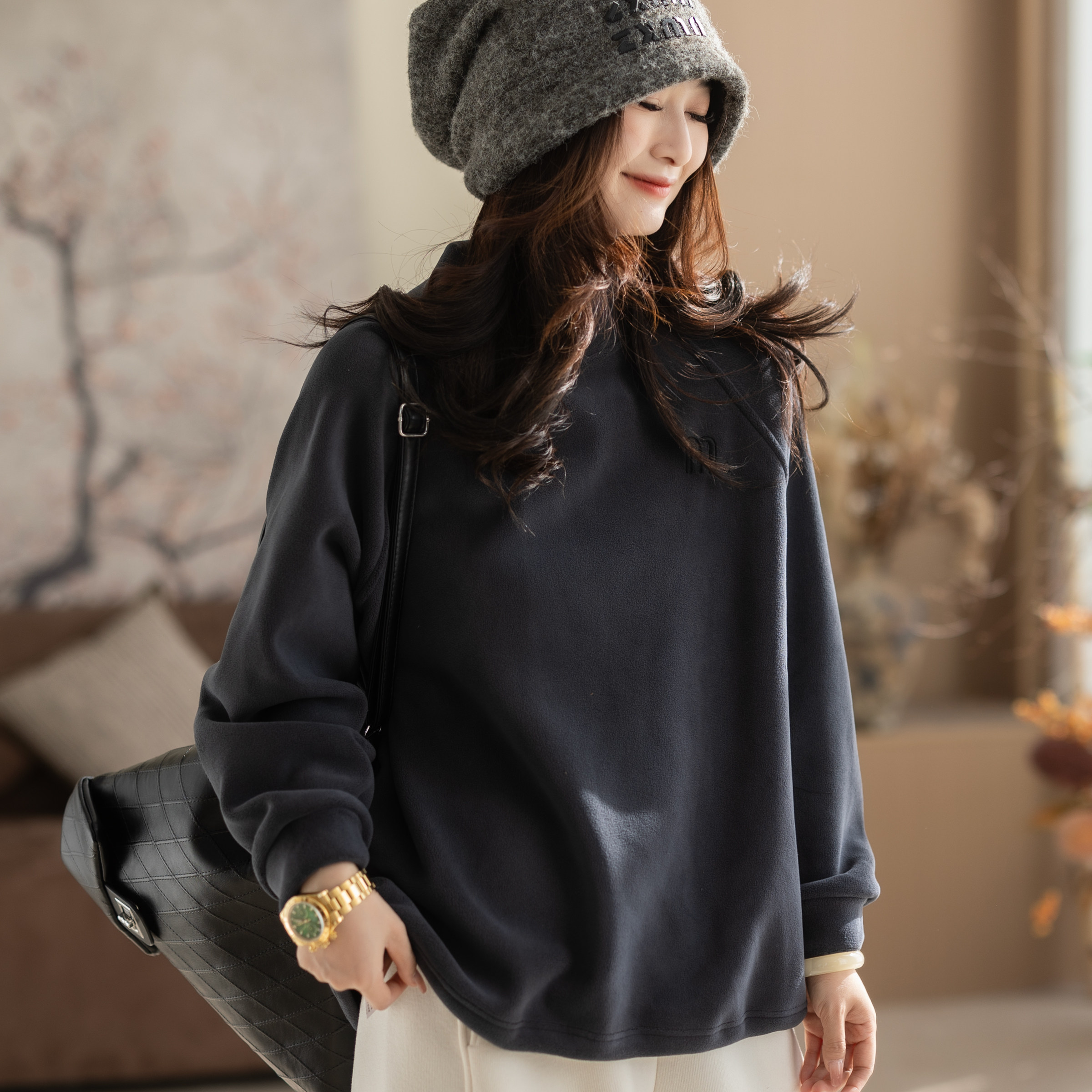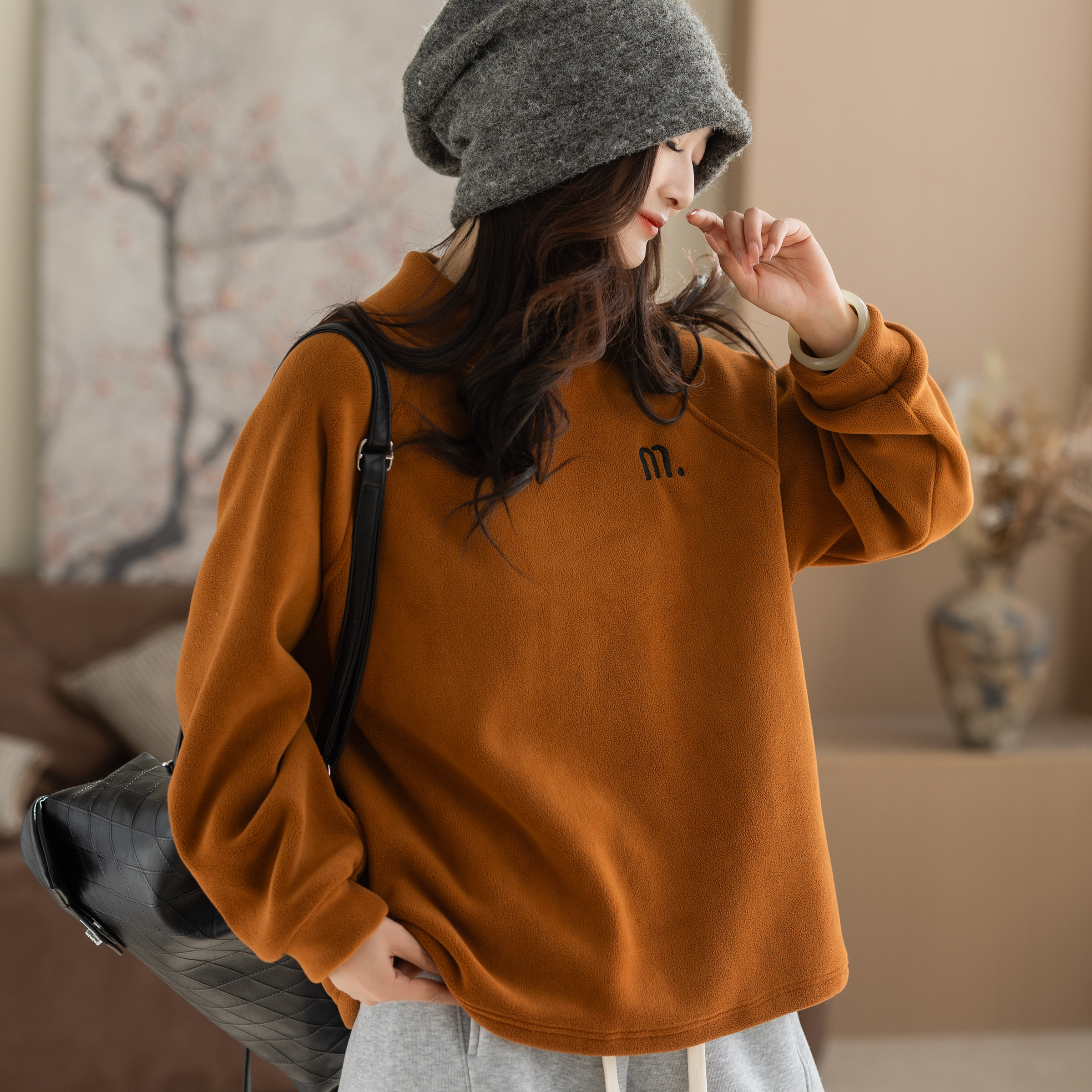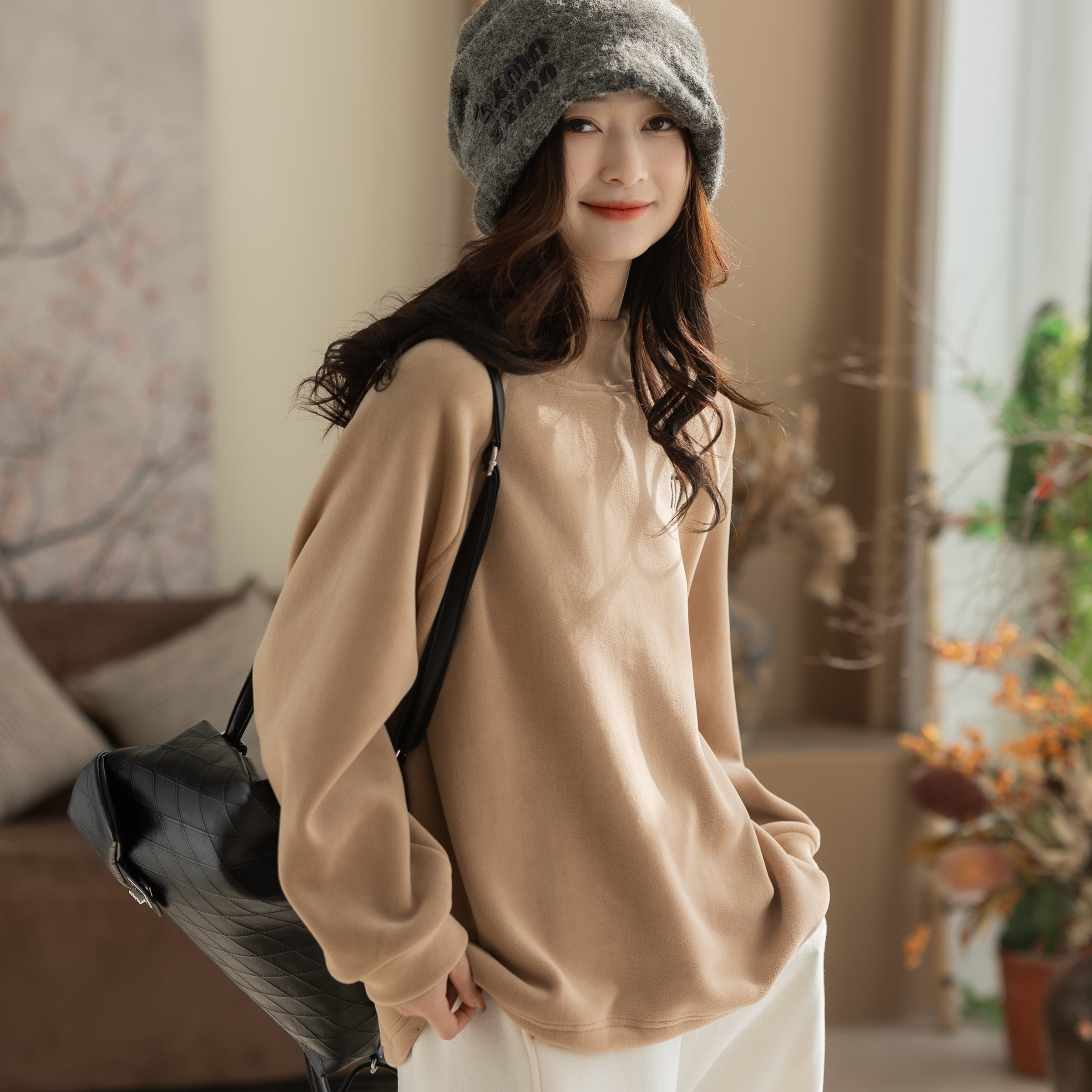 咖咪羽打底衫女秋冬新款奥利绒复古圆领套头休闲纯色流行女装上衣