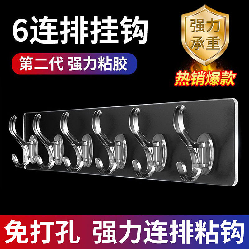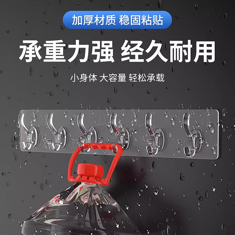 强力粘胶免打孔厨房墙壁衣服粘贴贴墙透明无痕承重挂衣卫生间粘钩