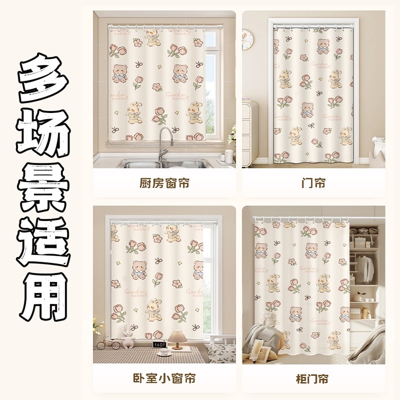 2024新款免打孔安装窗帘卧室遮阳帘遮光布飘窗隔音窗帘杆一整套全