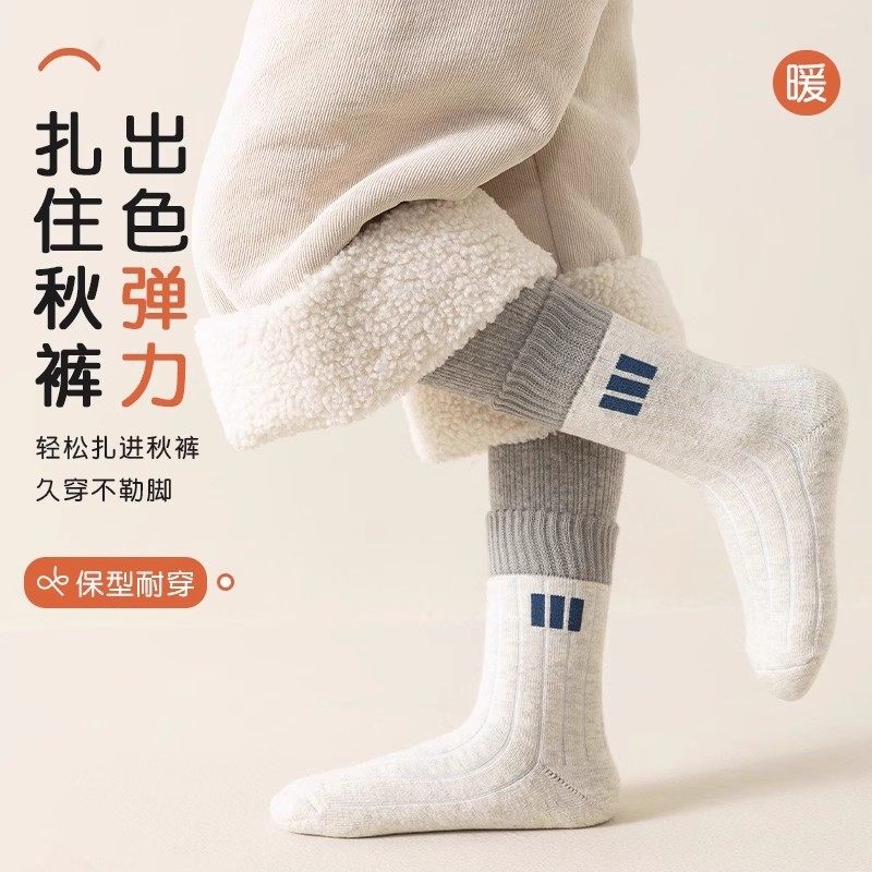 儿童袜子男童秋冬季加绒加厚中长筒中大童毛圈保暖冬款御寒中筒