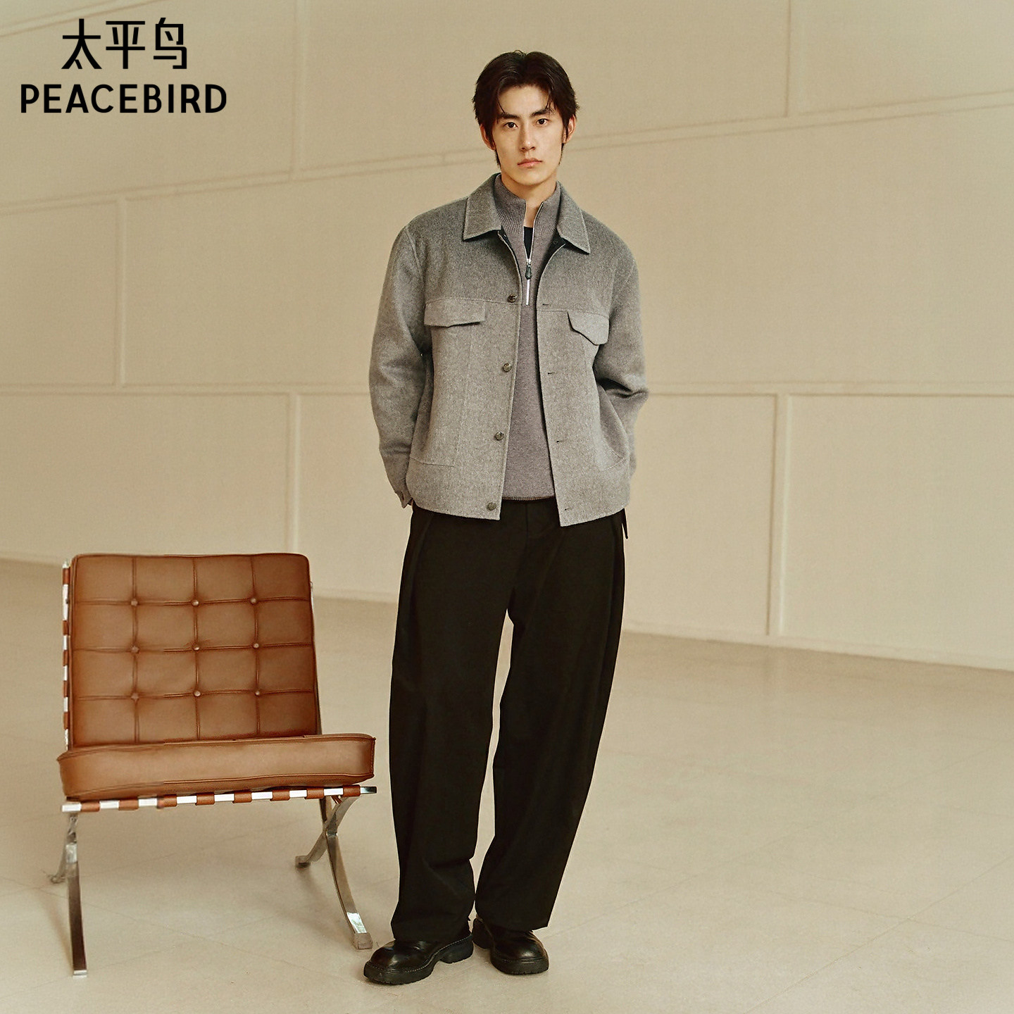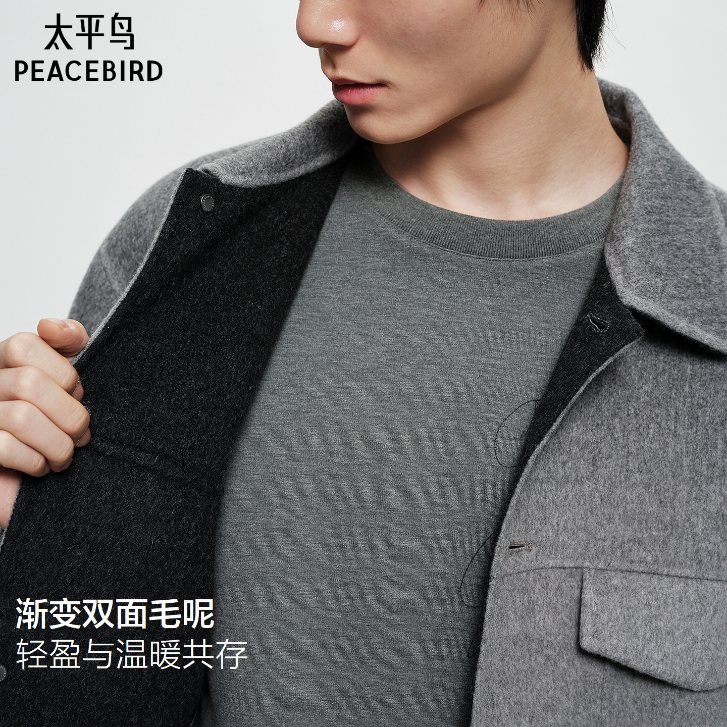 【商场同款】太平鸟男装渐变羊毛夹克25冬新款毛呢外套B1BCF4227@
