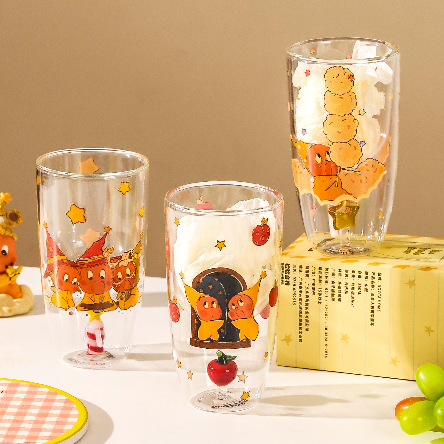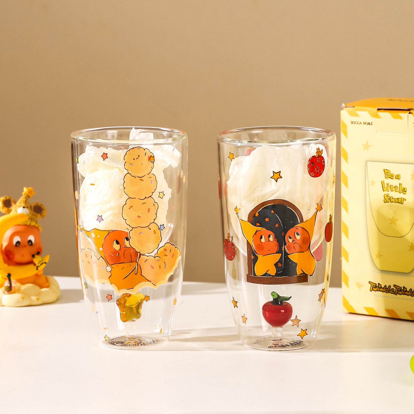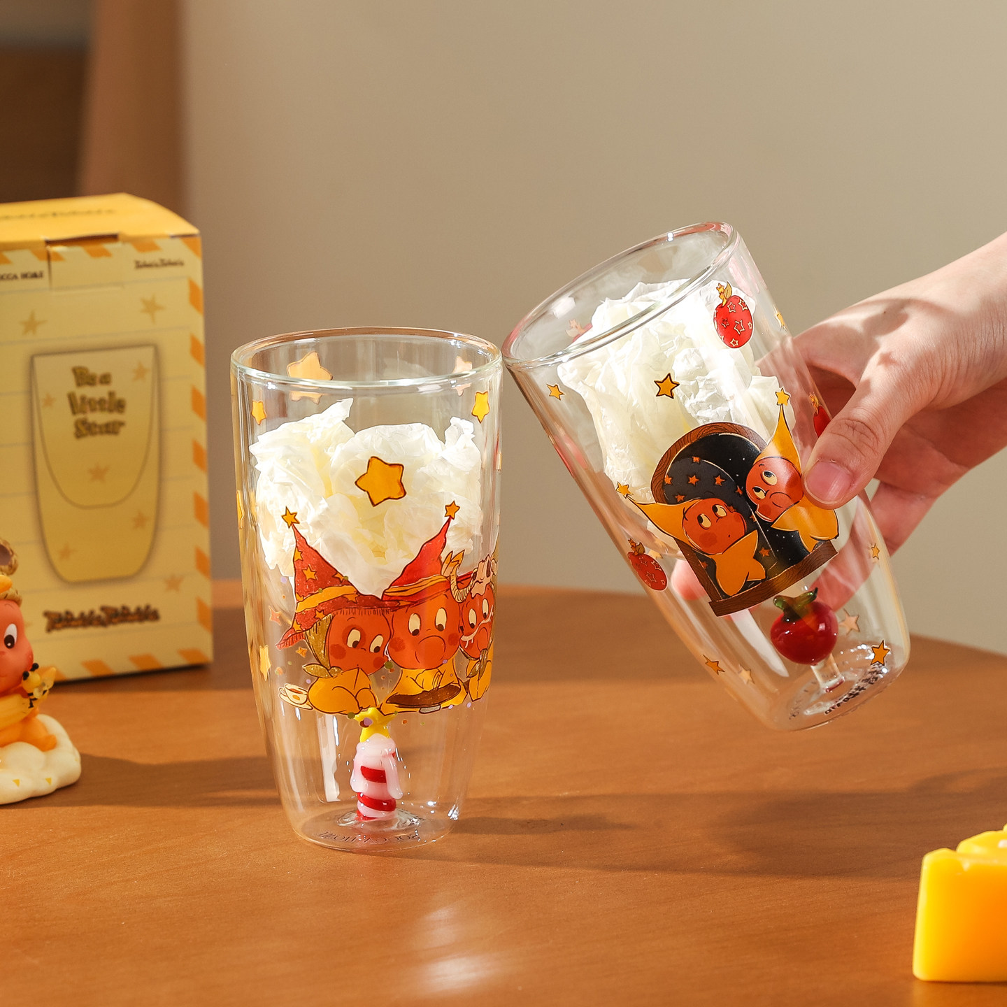 川岛屋星星人玻璃杯女双层啤酒杯高颜值家用喝水杯咖啡牛奶果汁杯